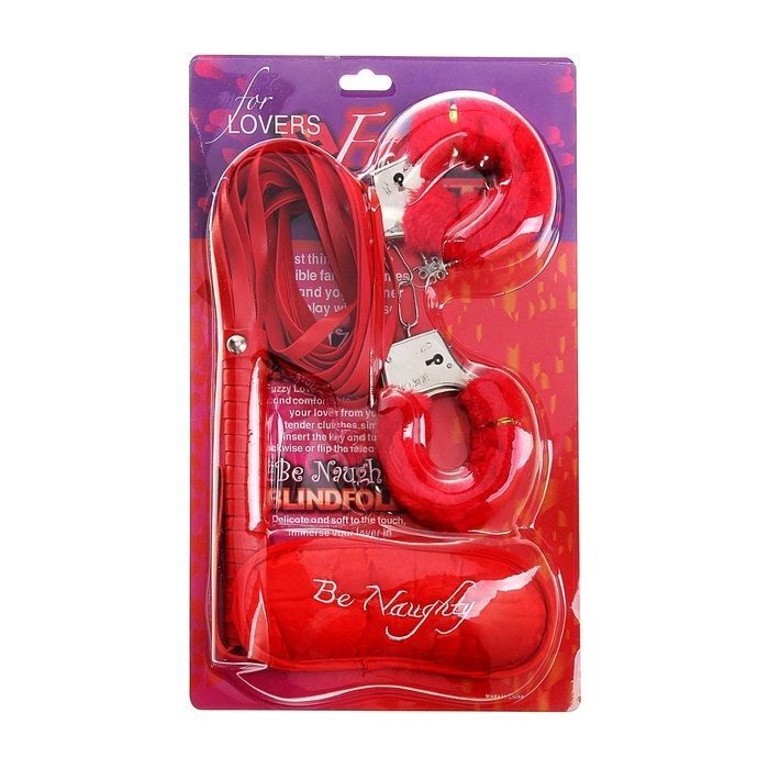 Набор включает в себя плетку, наручники с мягкой обивкой и маску для глаз с надписью "Be Naughty". Эти аксессуары идеально подходят для пар, которые хотят разнообразить свою интимную жизнь и добавить элемент игры. Плетка с длинными лентами и наручники с декоративным мехом обеспечивают комфорт и безопасность во время использования.