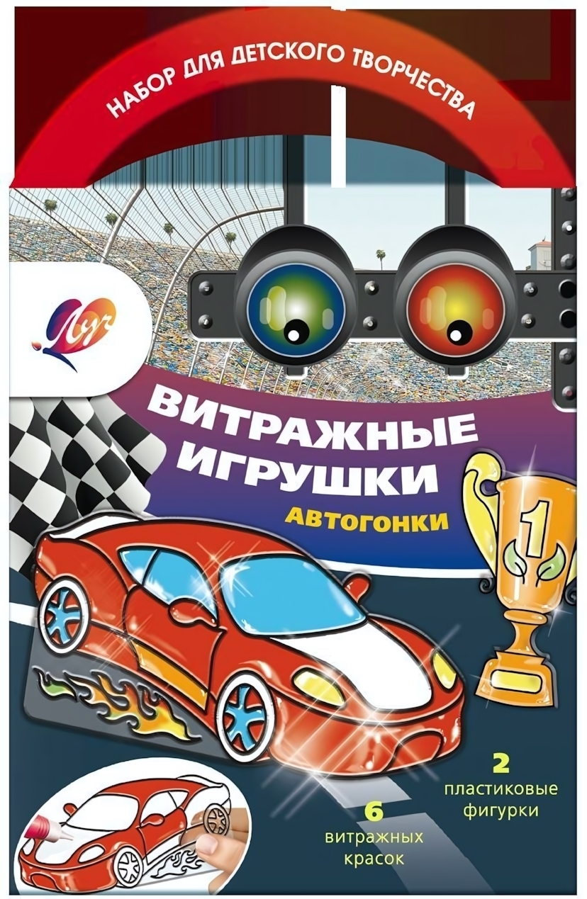 Набор для творчества «Витражные игрушки. Автогонки» с 6 красками, 2 трафаретами, пластик