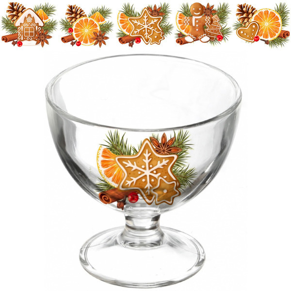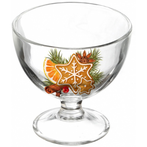 Каждая креманка выполнена из качественного стекла, что обеспечивает долговечность и надежность. Прозрачный материал позволяет продемонстрировать красоту подаваемых блюд, а праздничный декор с изображениями снежинок, имбирных пряников и дольками апельсина добавляет яркие акценты. Эти креманки легко чистятся и подходят для использования в посудомоечной машине, что экономит ваше время на уборку после праздника.