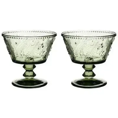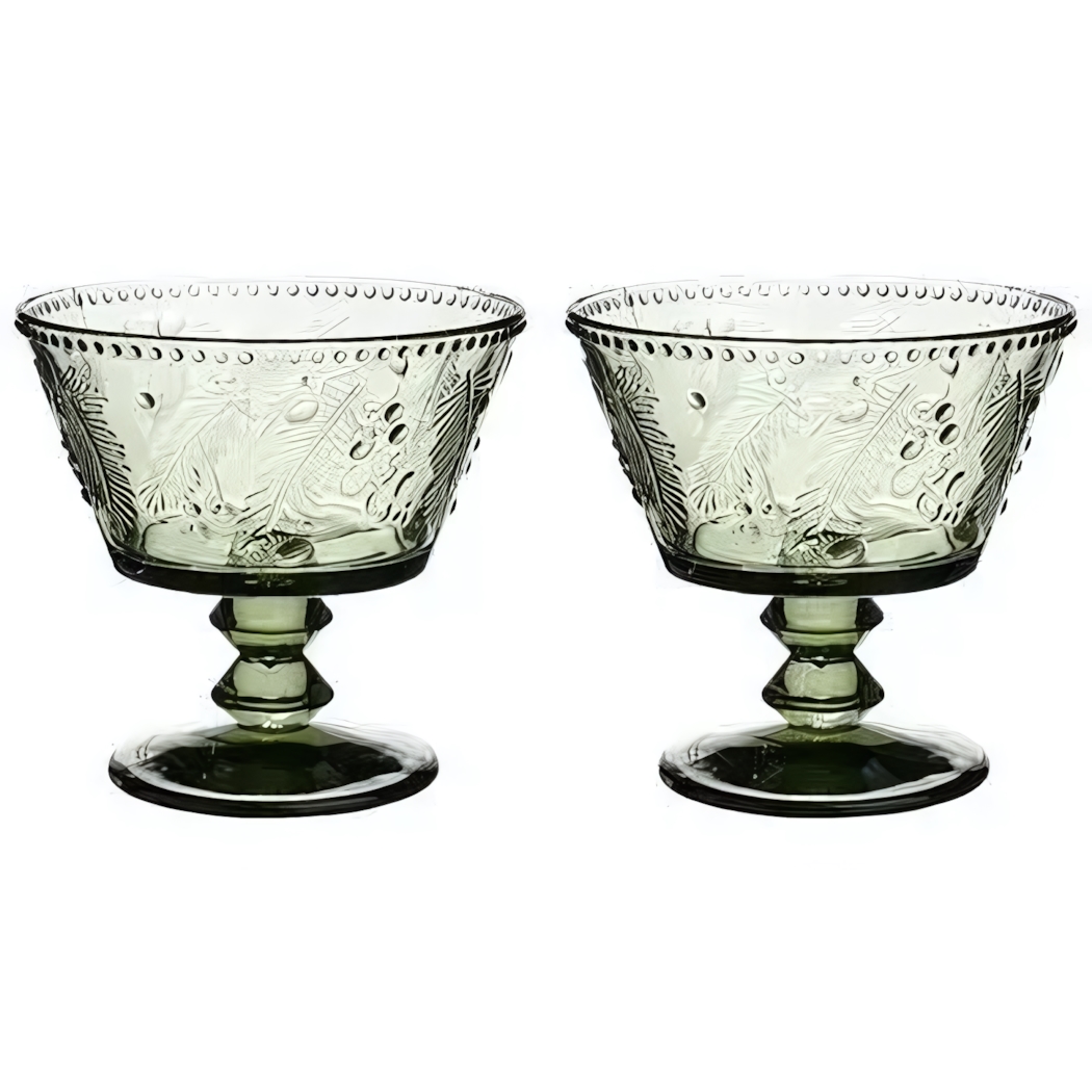 Комплект состоит из 2 стеклянных креманок зеленого цвета, что добавляет яркости и праздничности. Стеклянный материал обеспечивает безопасность и простоту ухода — можно мыть в посудомоечной машине или вручную без лишних усилий.