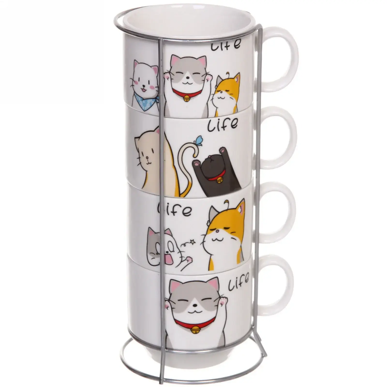 Набор кружек 'Милые животные' 200мл, 4 шт на металлической подставке, керамика