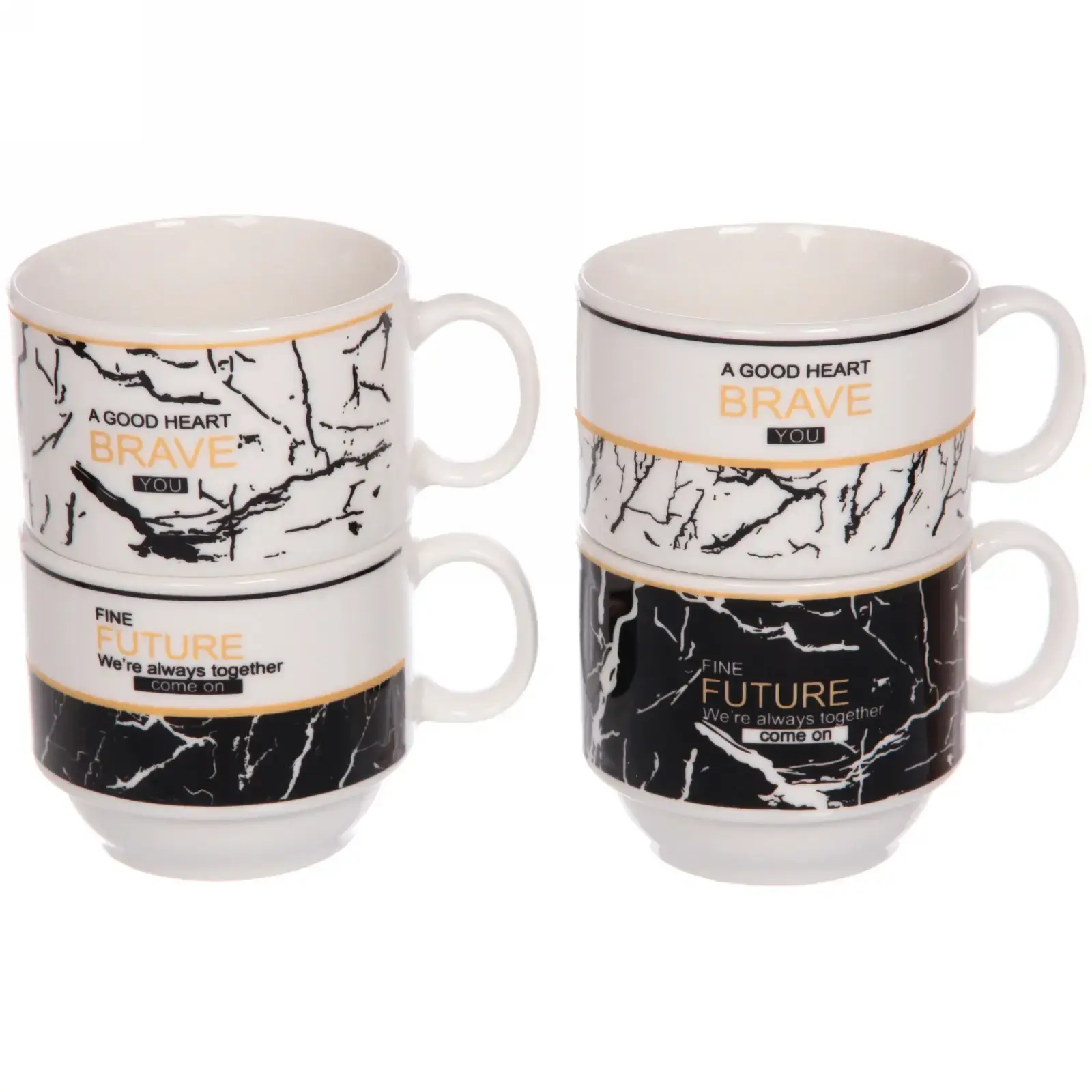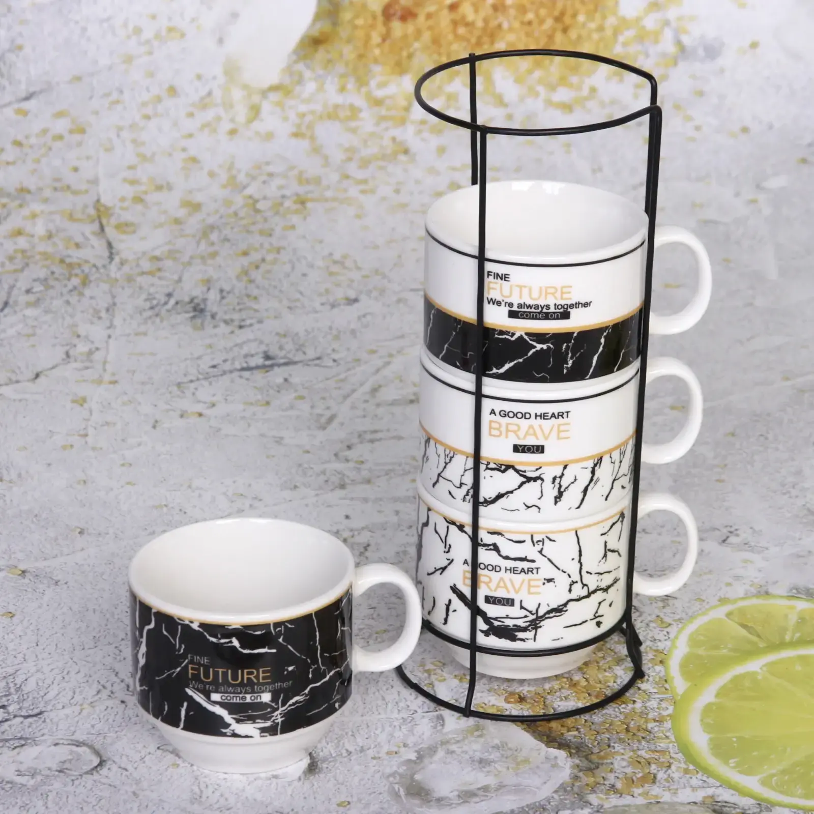 Погрузитесь в атмосферу уюта и стиля с набором кружек на стойке «Мрамор». Эти кружки не только красивы, но и практичны, что делает их идеальным выбором для вашего дома или офиса. Каждая кружка объемом 200 мл выполнена из качественной керамики, что обеспечивает долговечность и надежность. Мраморный узор в сочетании с золотыми надписями придаст вашему интерьеру элегантный вид.