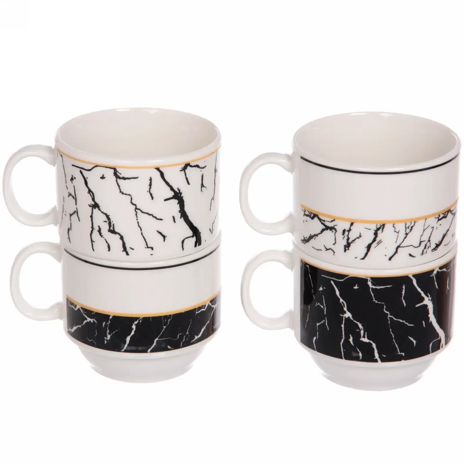 Каждая кружка имеет стандартный размер, что делает их удобными для использования. Мраморный узор и золотые элементы дизайна делают набор не только функциональным, но и эстетически привлекательным. Этот набор станет отличным подарком для друзей и близких, а также прекрасным дополнением к вашей кухонной посуде.