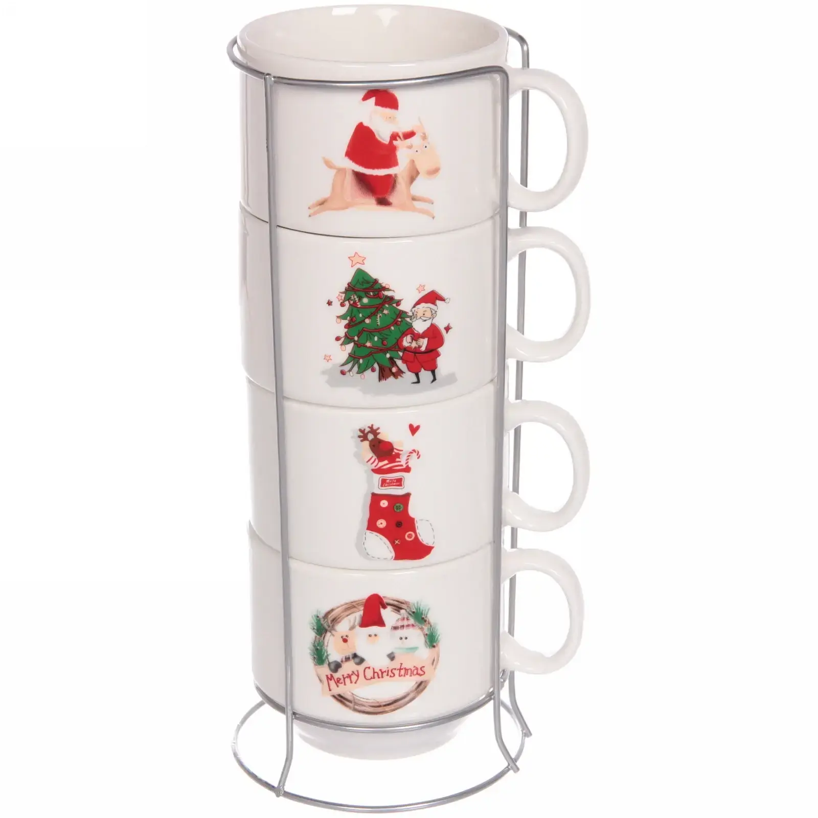 Набор кружек на стойке 'Новогодний микс', 200мл, керамика/металл