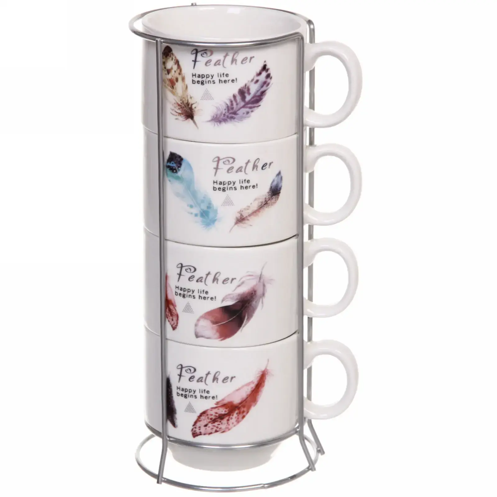 Набор кружек 'Волшебное перышко' на металлической стойке, 4 шт по 200мл