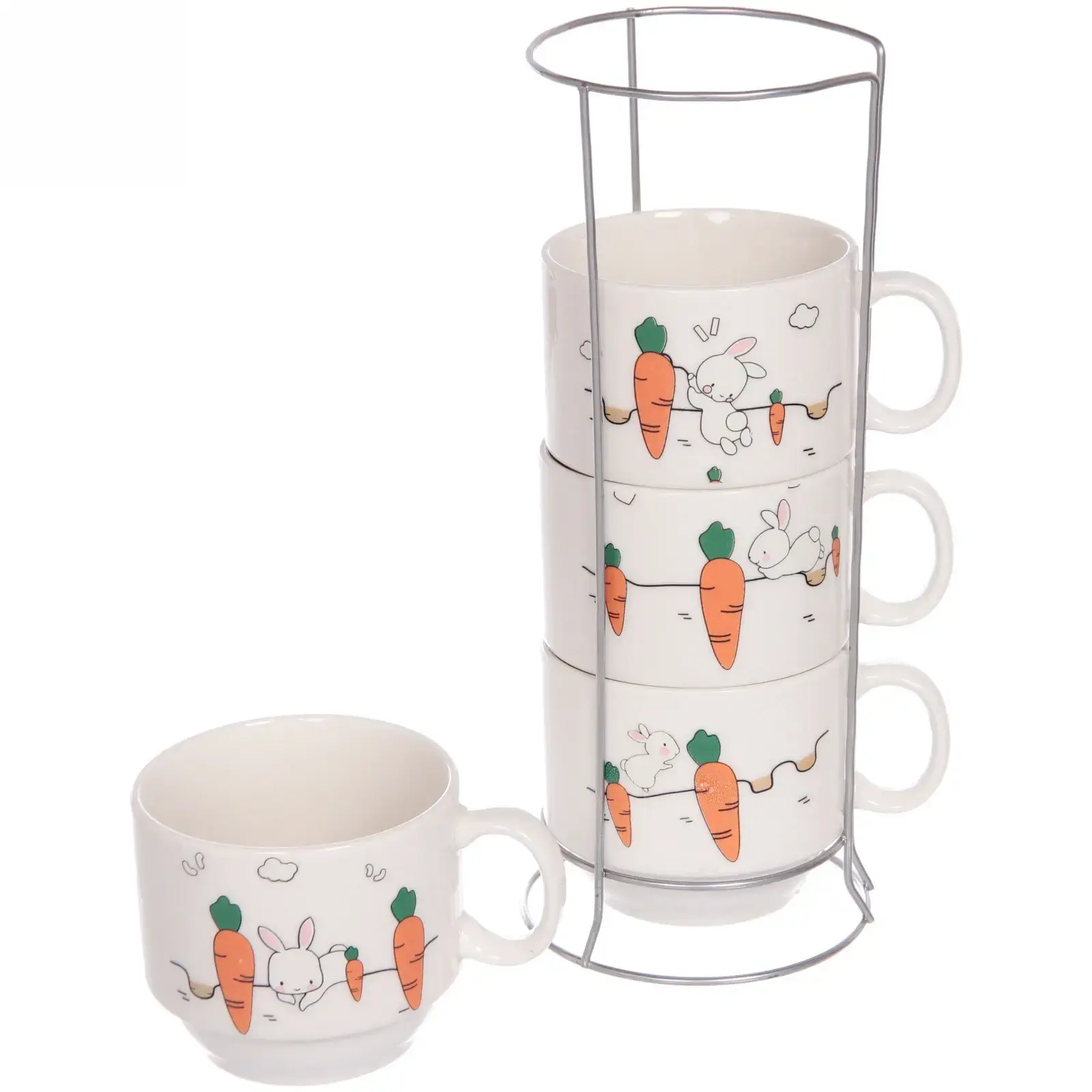 Набор включает четыре кружки, которые удобно размещаются на металлической стойке. Это не только экономит место на столе, но и позволяет легко организовать хранение. Кружки идеально подходят для чая, кофе или других напитков, а также могут использоваться для подачи десертов. Они станут отличным дополнением к вашей кухонной посуде и привнесут нотку игривости в повседневные моменты.