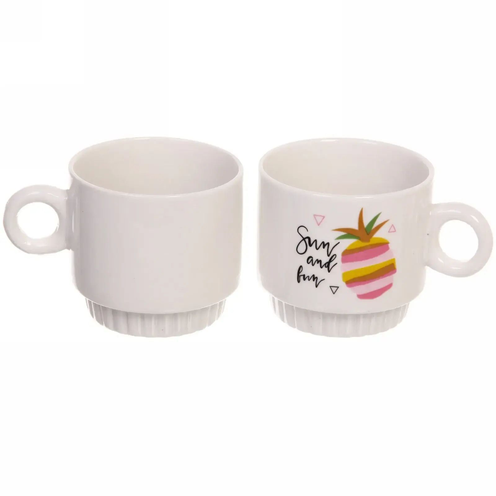 Набор кружек на металлической стойке, 280мл, керамика, дизайн «Ананасы» с надписями Elegance/Save the Date