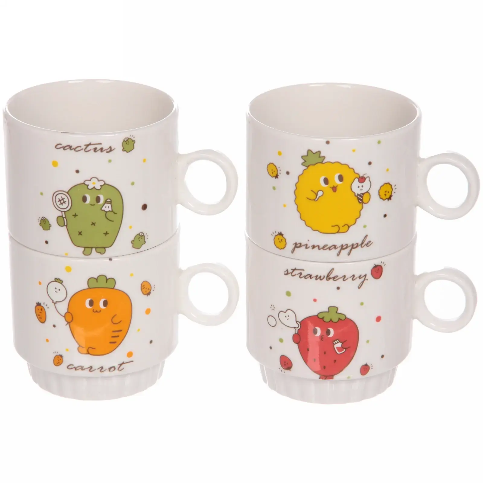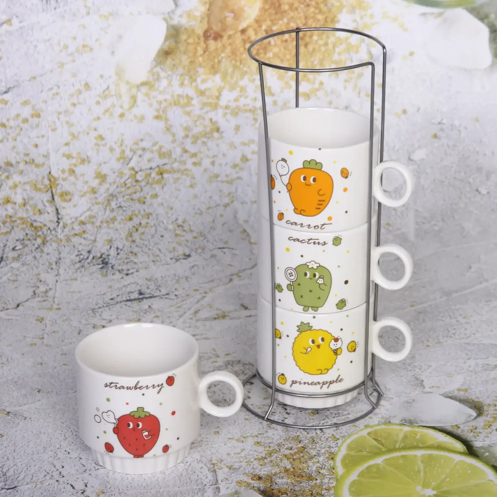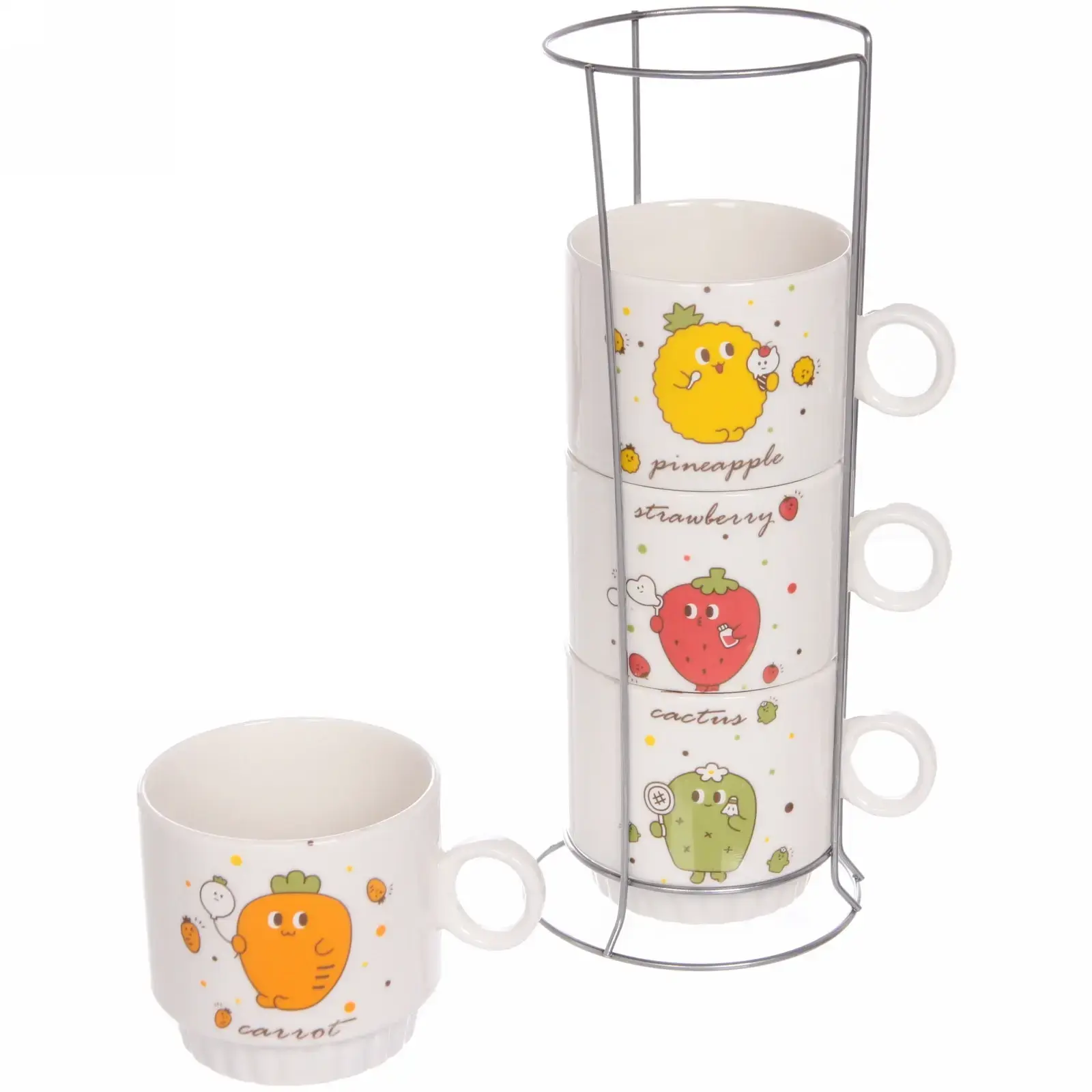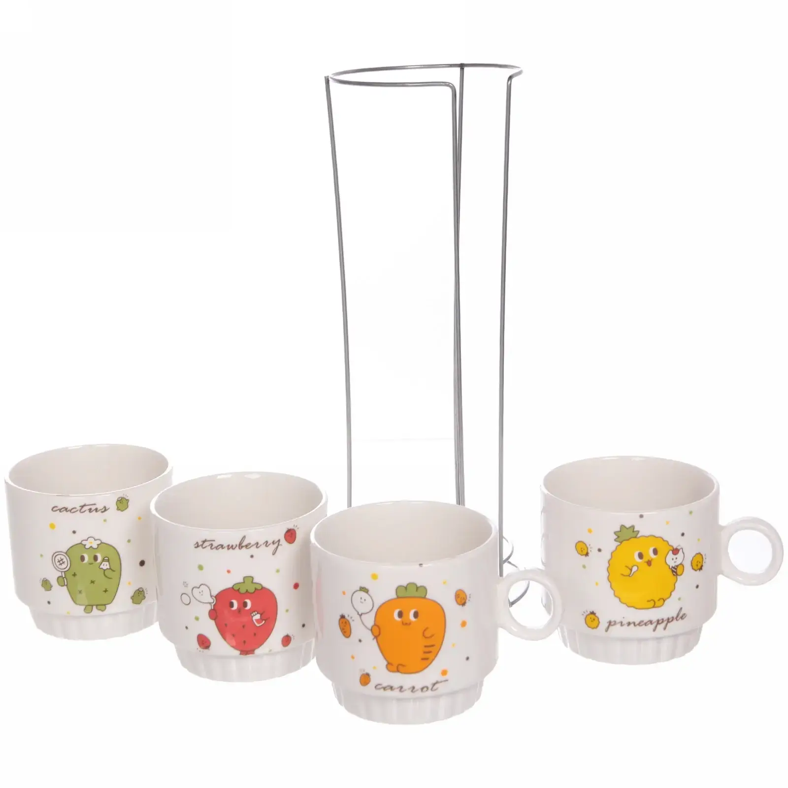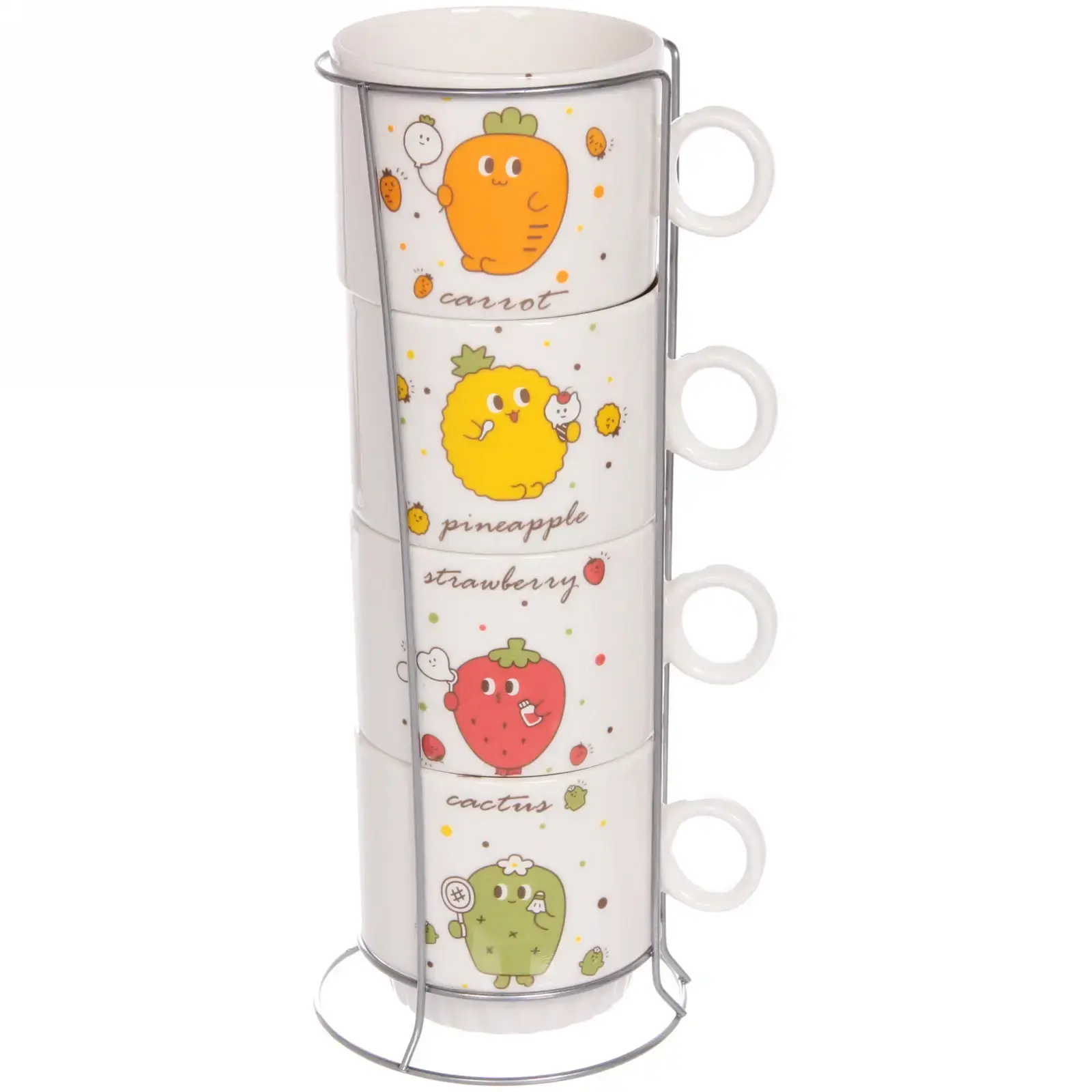 Набор кружек на стойке 'Фруктовый микс', 4шт, 280мл, керамика/металл