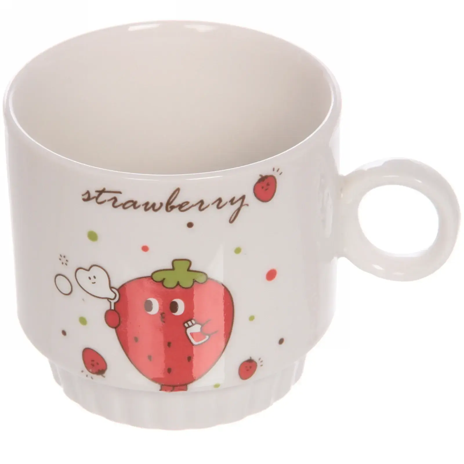 - Каждая кружка имеет индивидуальный рисунок (морковь, ананас, клубника, кактус)