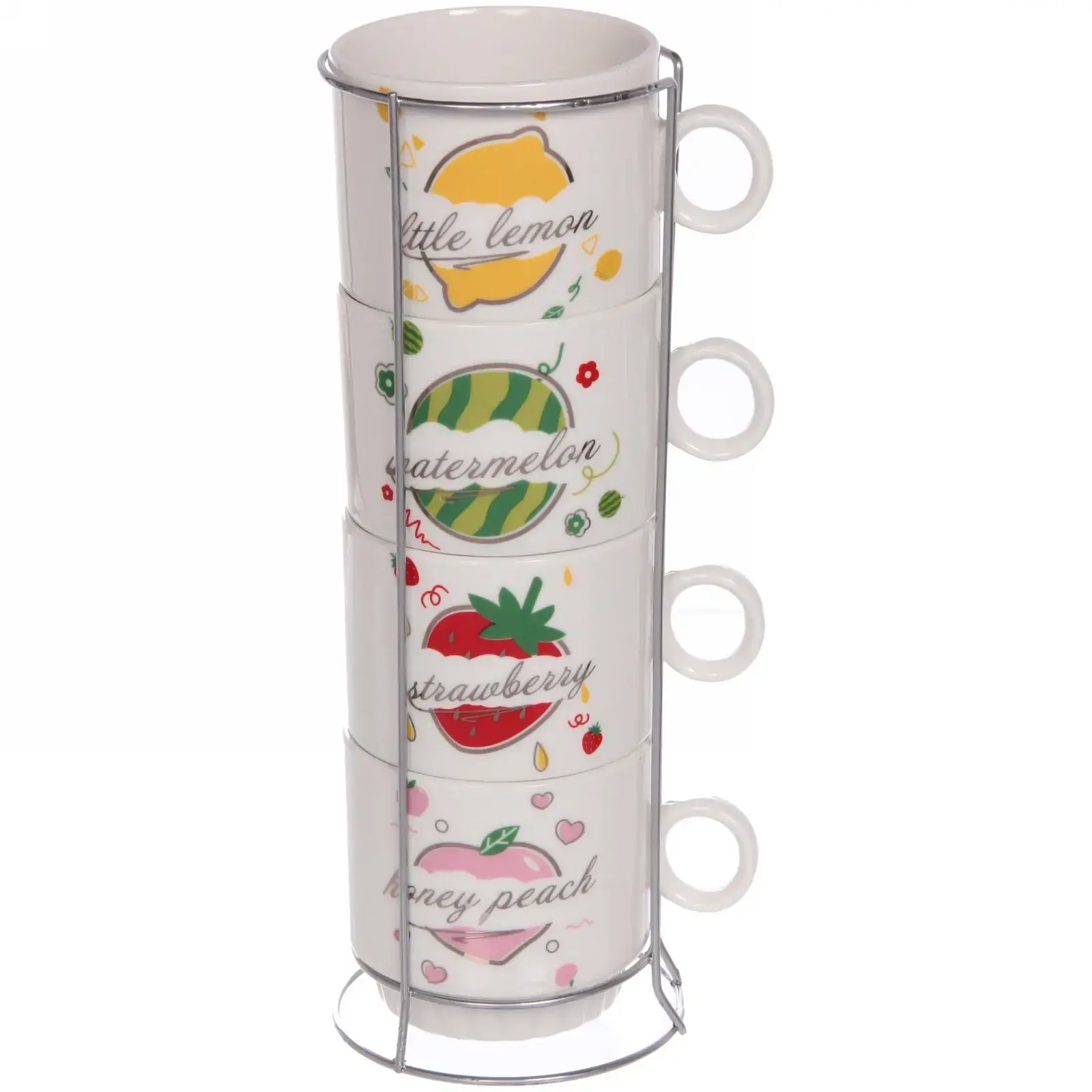 Набор кружек «Фрукты микс» на металлической стойке, 4 шт, 280мл, керамика, яркие принты