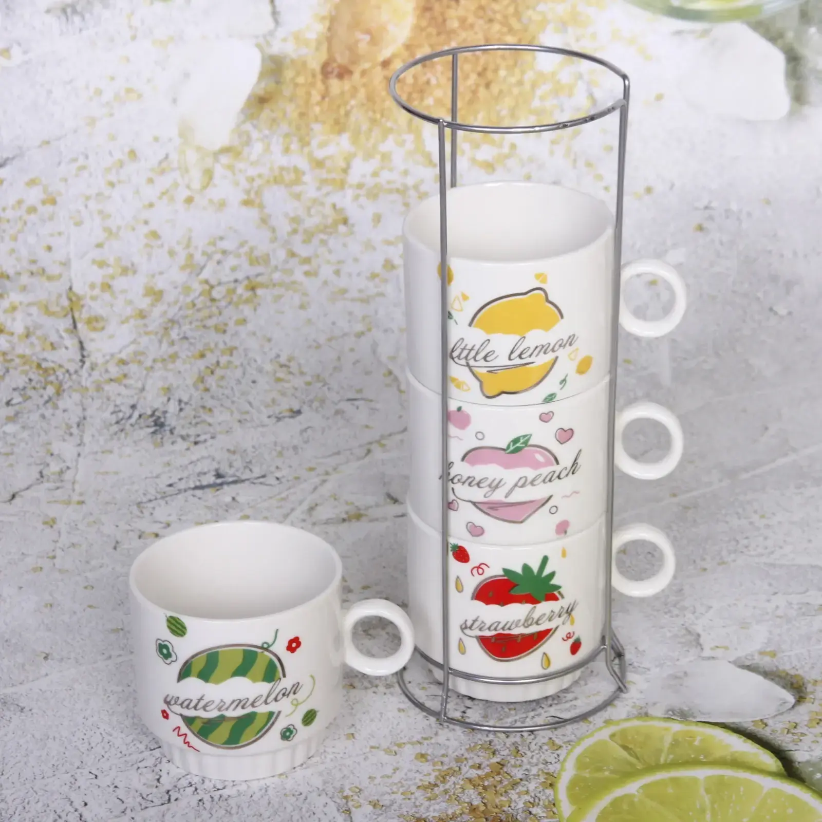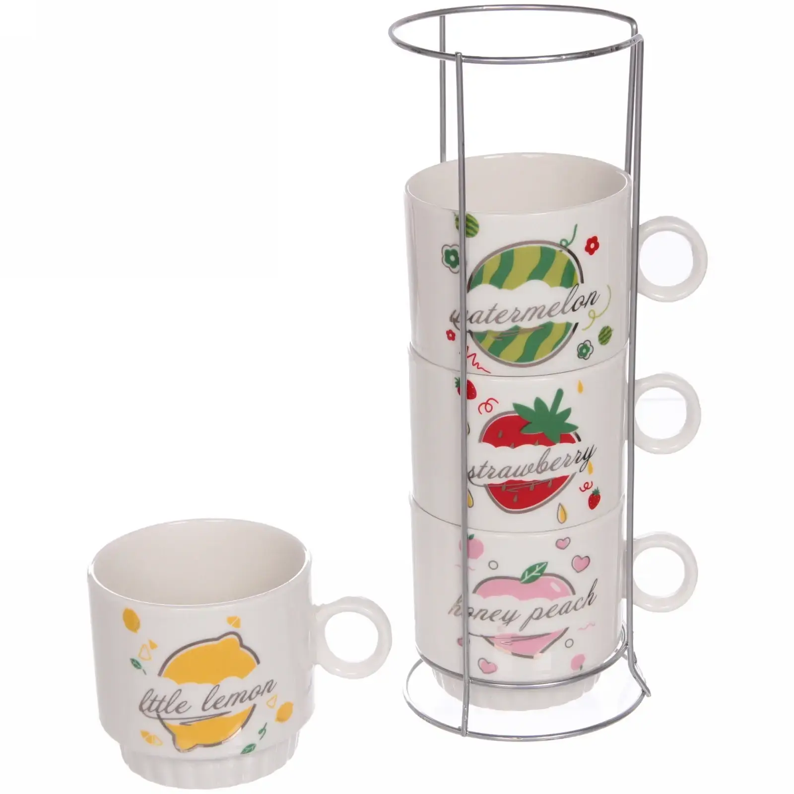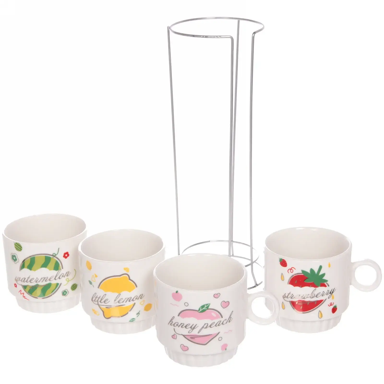 Эргономичная металлическая стойка и 4 яркие кружки созданы для тех, кто ценит удобство и стиль. Каждая чашка с уникальным фруктовым принтом добавит летнего настроения вашему утреннему кофе или вечернему чаепитию.