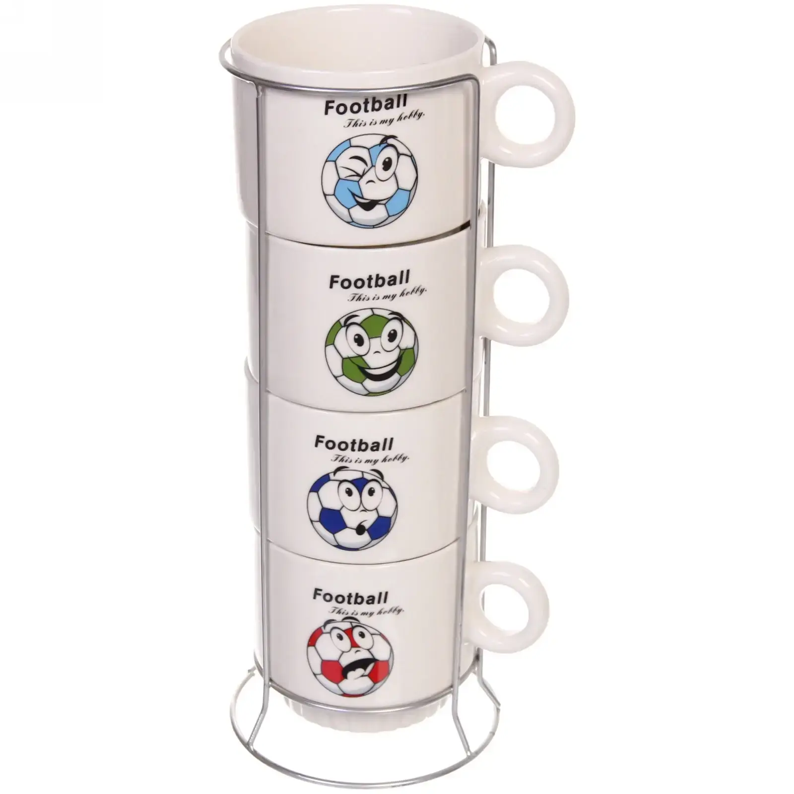 Набор кружек на стойке «Футбол», 4 шт., 280 мл, керамика, металл, тематический дизайн