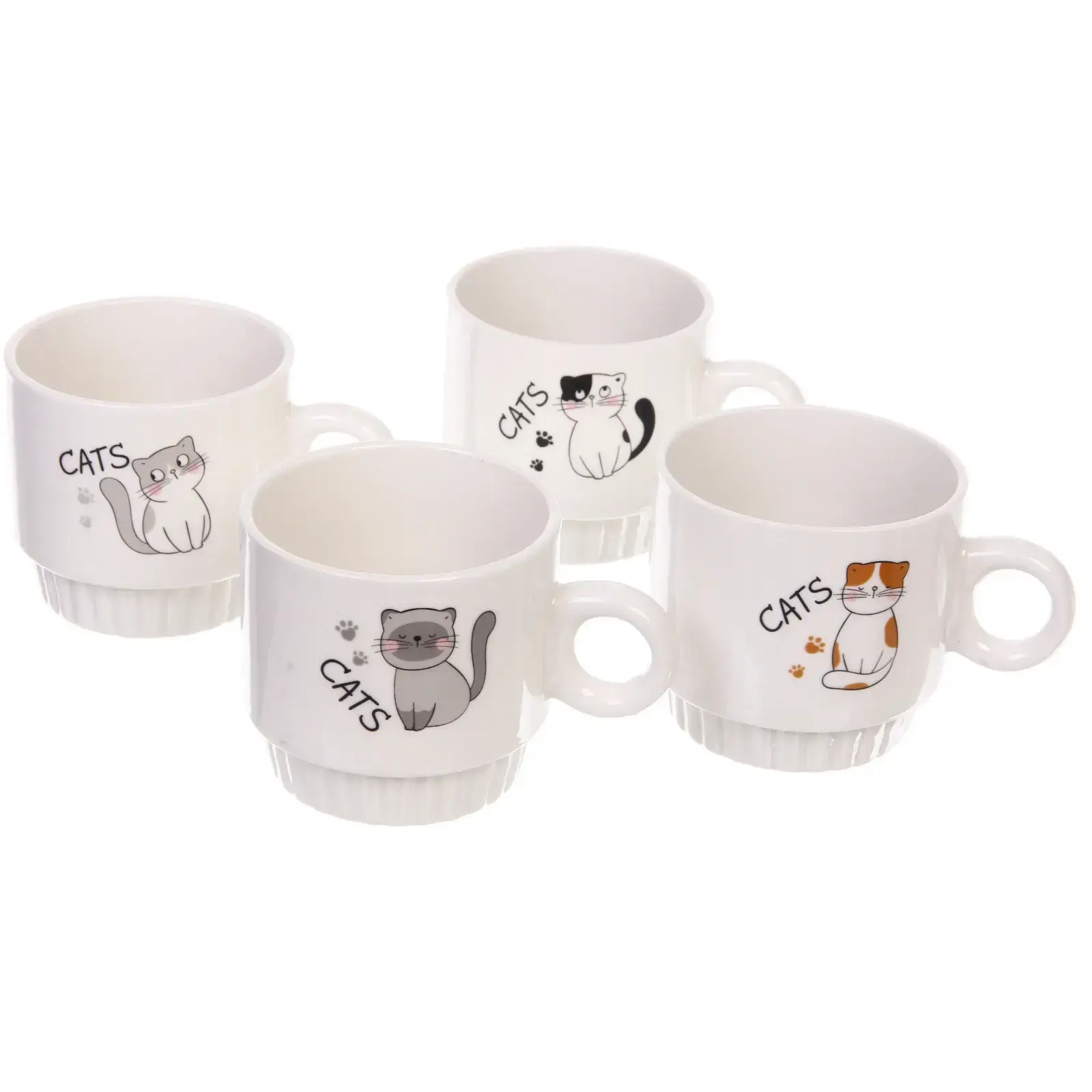 Каждая кружка имеет округлую форму и небольшую ручку, что делает их удобными в использовании. Белый цвет кружек с яркими рисунками прекрасно впишется в любой интерьер. Размеры кружек и стойки идеально подходят для стандартного использования, а рифленая текстура в нижней части кружек предотвращает скольжение. Набор включает 4 кружки, что позволяет наслаждаться напитками в компании.