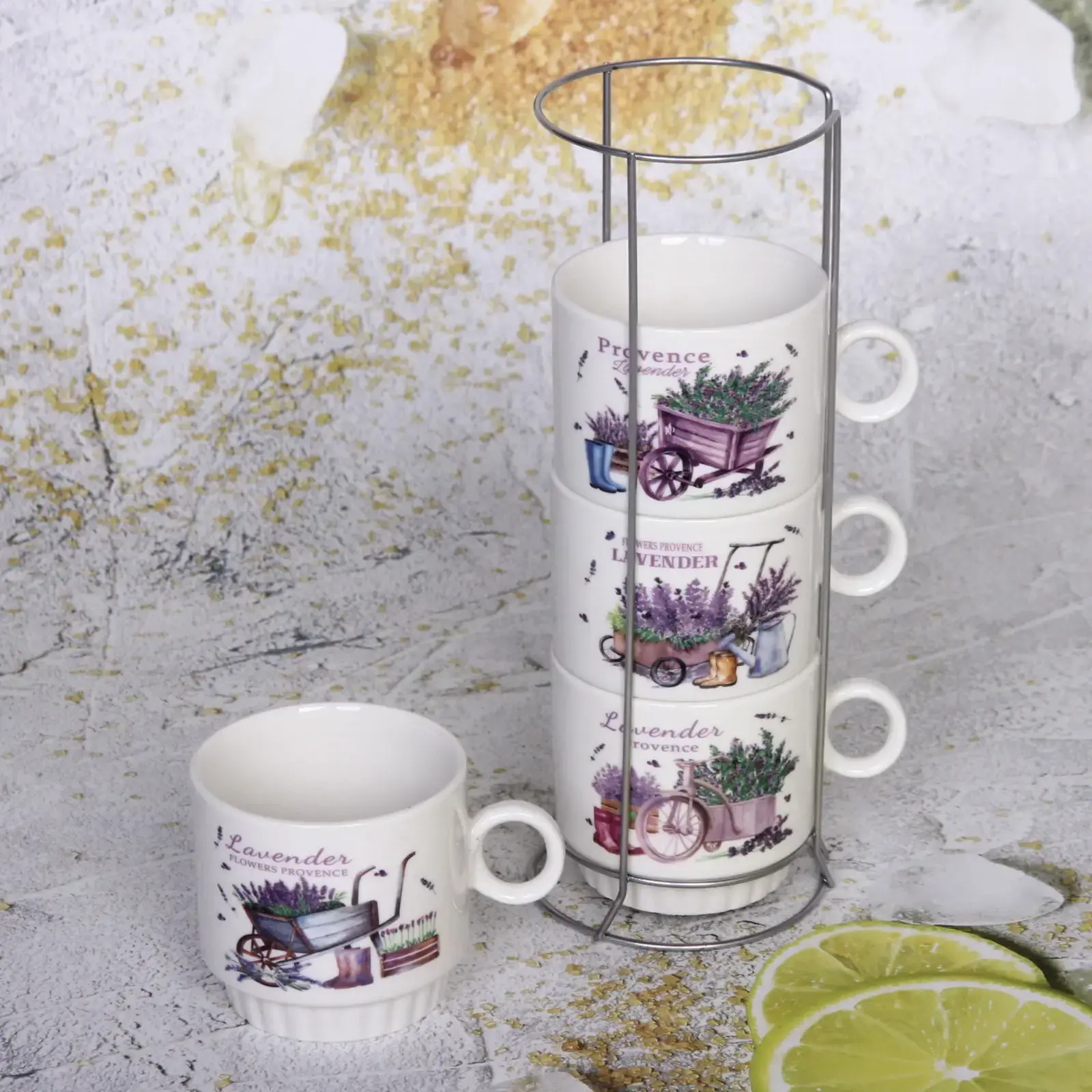 Выбирая набор кружек «Прованс», вы получаете не только стильный аксессуар, но и высокое качество. Керамика обеспечивает долговечность и легкость в уходе, а металлическая стойка добавляет современный акцент. Рисунки на кружках выполнены в пастельных тонах, что делает их универсальными для любого стиля кухни.