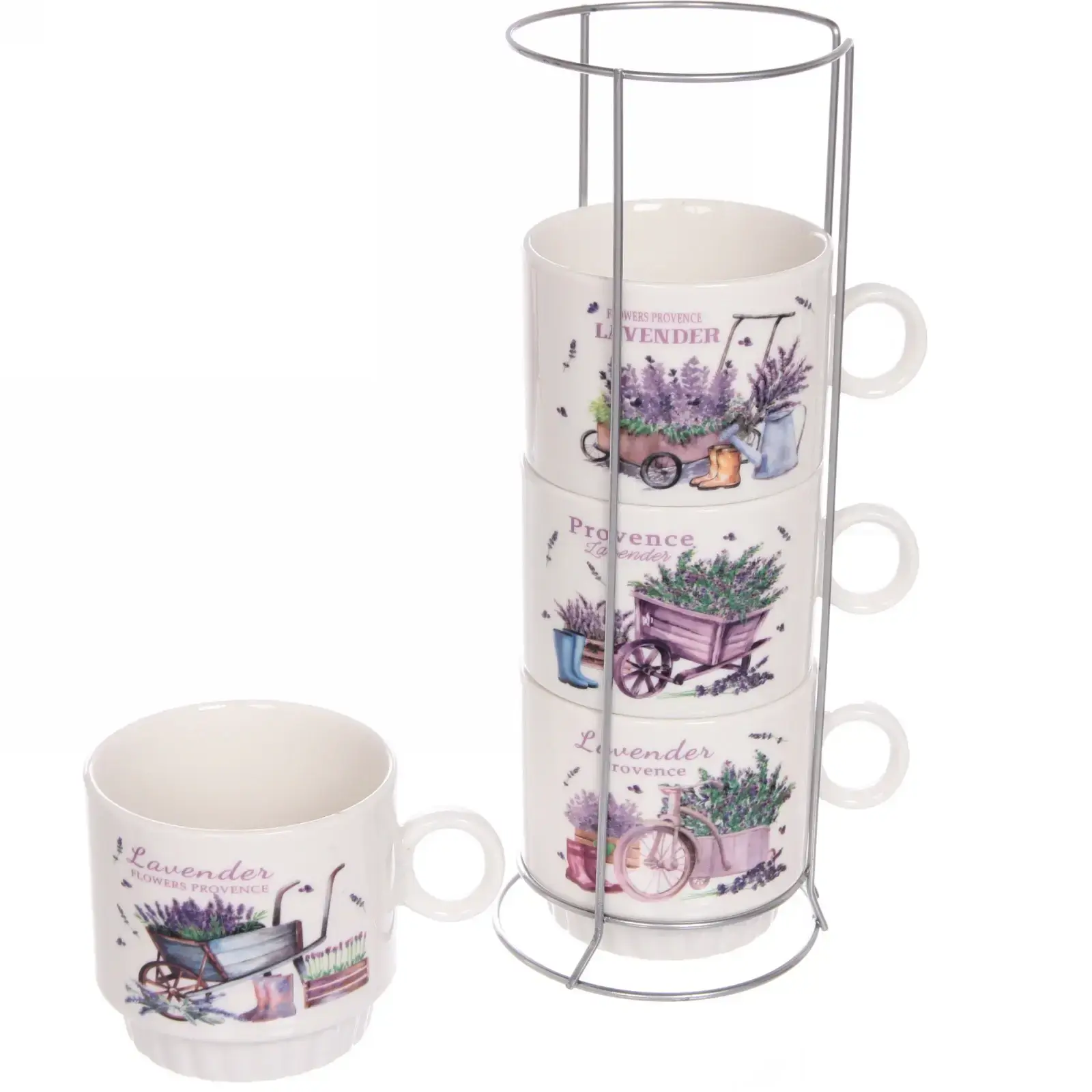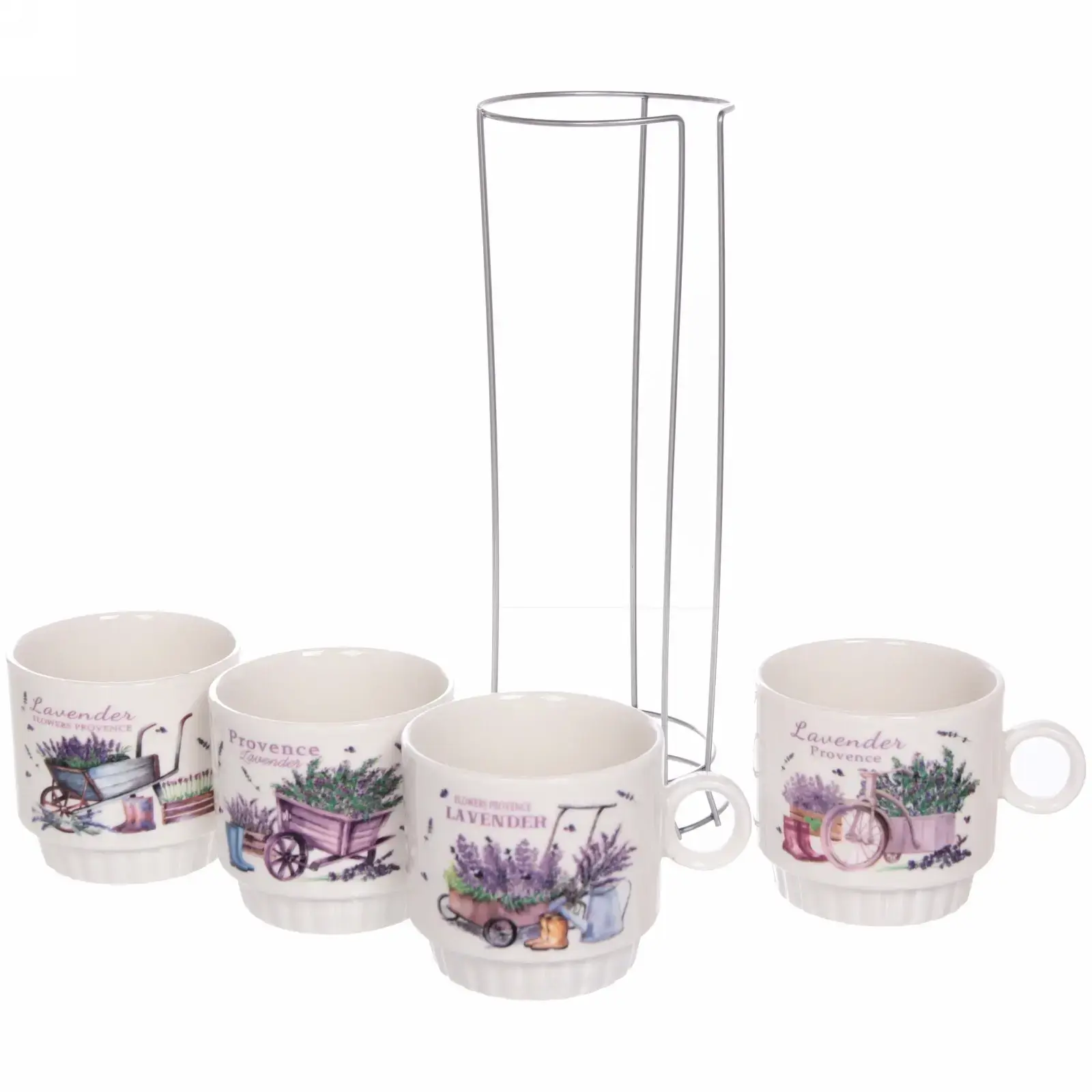 Каждая кружка имеет стандартный размер, что делает их удобными для использования. Стойка выполнена из металла с хромированным покрытием, что обеспечивает надежность и долговечность. Набор кружек «Прованс» станет не только функциональным, но и стильным элементом вашего домашнего декора.