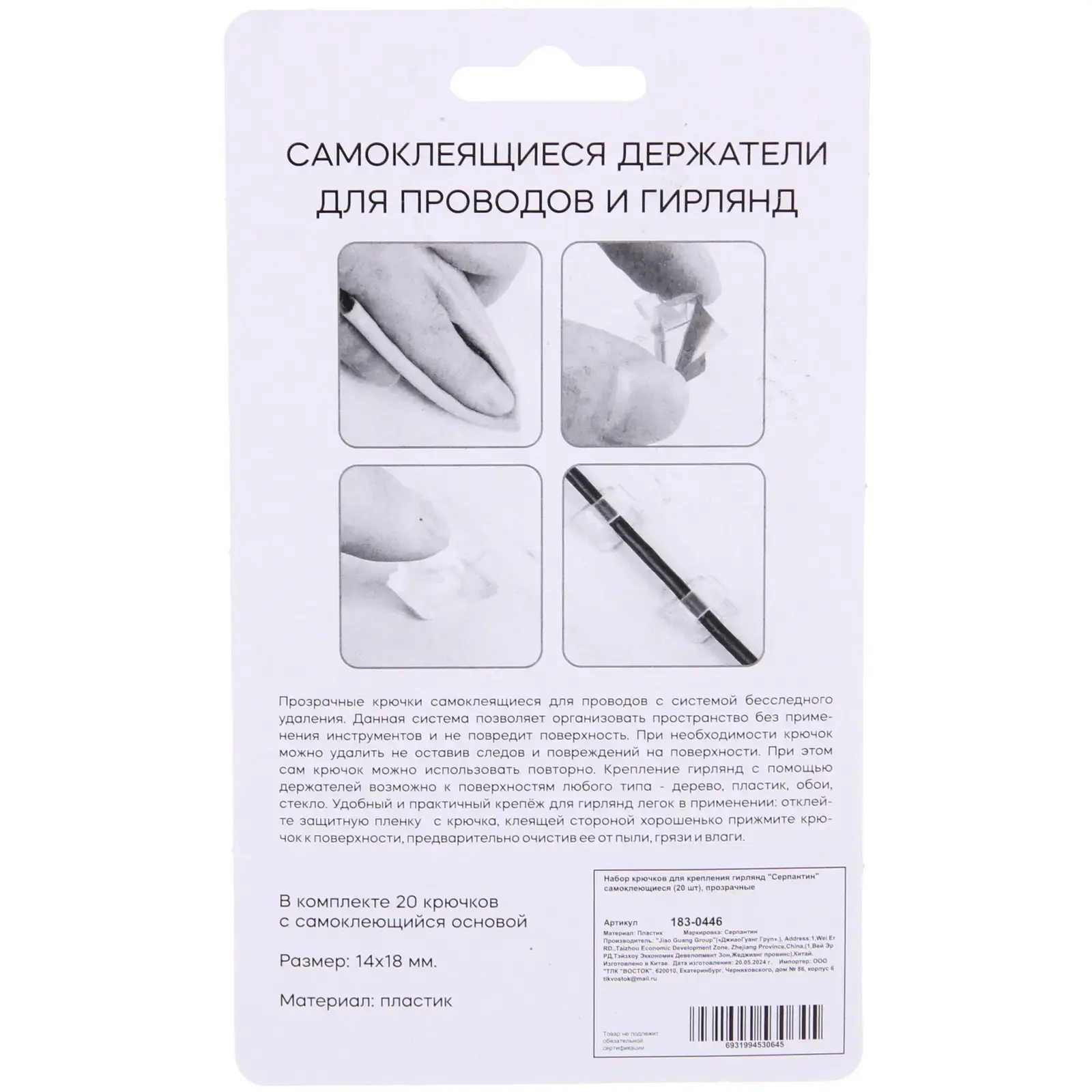Ищете простой и надежный способ закрепить гирлянды? Наш набор крючков для крепления гирлянд «Серпантин» — идеальное решение для создания уютной и праздничной атмосферы в вашем доме. Эти самоклеящиеся крючки обеспечивают надежное крепление без необходимости сверления и использования дополнительных крепежных элементов.