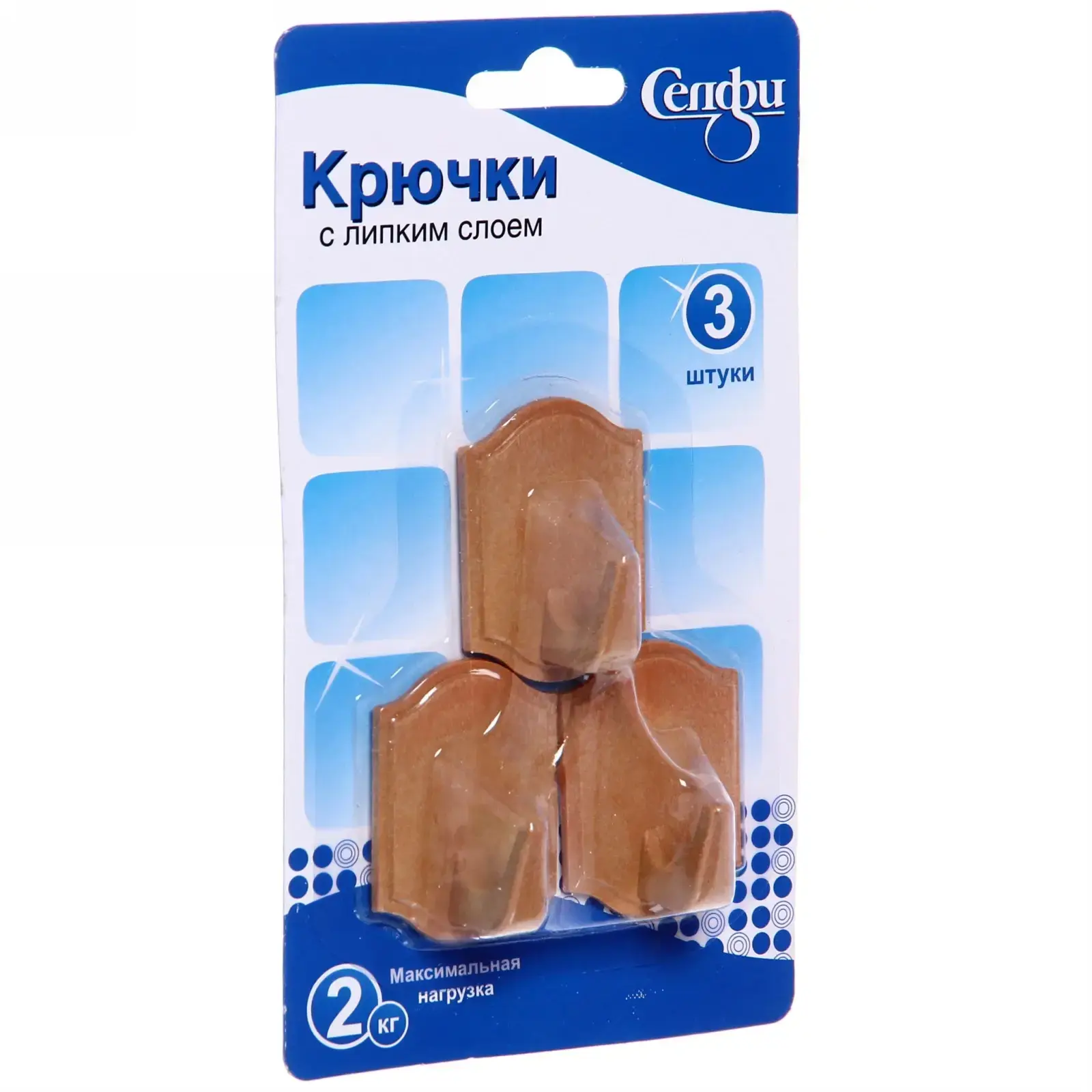 В наборе вы получите три крючка, выполненных в светло-коричневом цвете. Они имеют гладкую поверхность и петельную форму, что делает их удобными для использования. Максимальная нагрузка на каждый крючок составляет 2 кг, что позволяет крепить на них различные предметы, от ключей до полотенец.