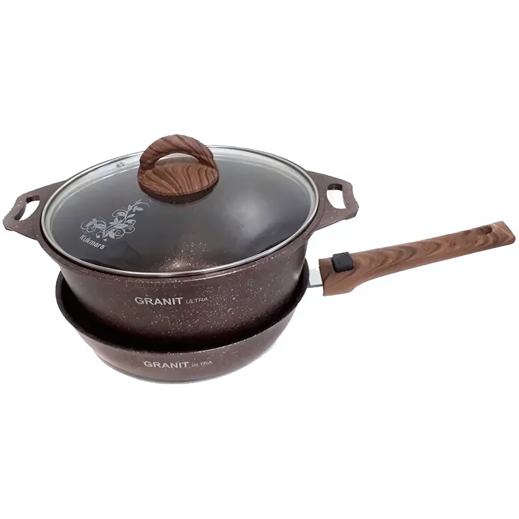 Этот кухонный набор «Granit Ultra» от бренда Kukmara объединяет качественную посуду из литого алюминия со стойким антипригарным покрытием, что обеспечивает равномерное тепло и безопасность при использовании. Идеально подходит для семейных кухонь, подарков и профессиональной эксплуатации.
