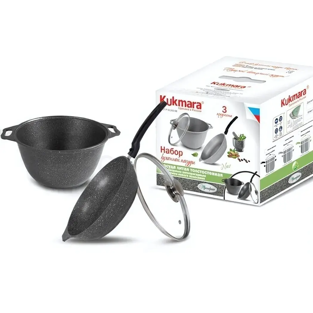 Набор посуды Kukmara серии 'Мраморная' создан для тех, кто ценит качество и удобство приготовления пищи. Уникальное антипригарное покрытие с частицами натурального мрамора обеспечивает превосходные результаты готовки без пригорания.