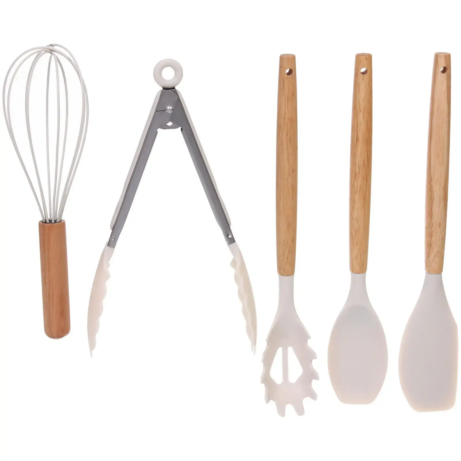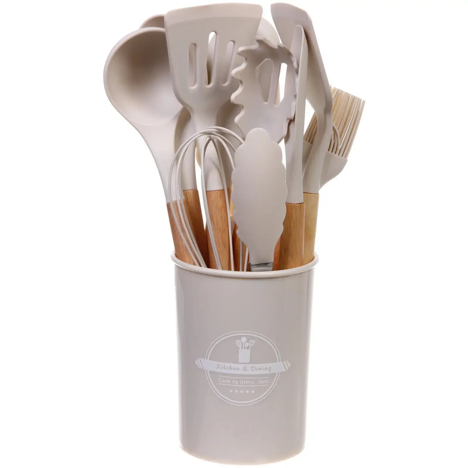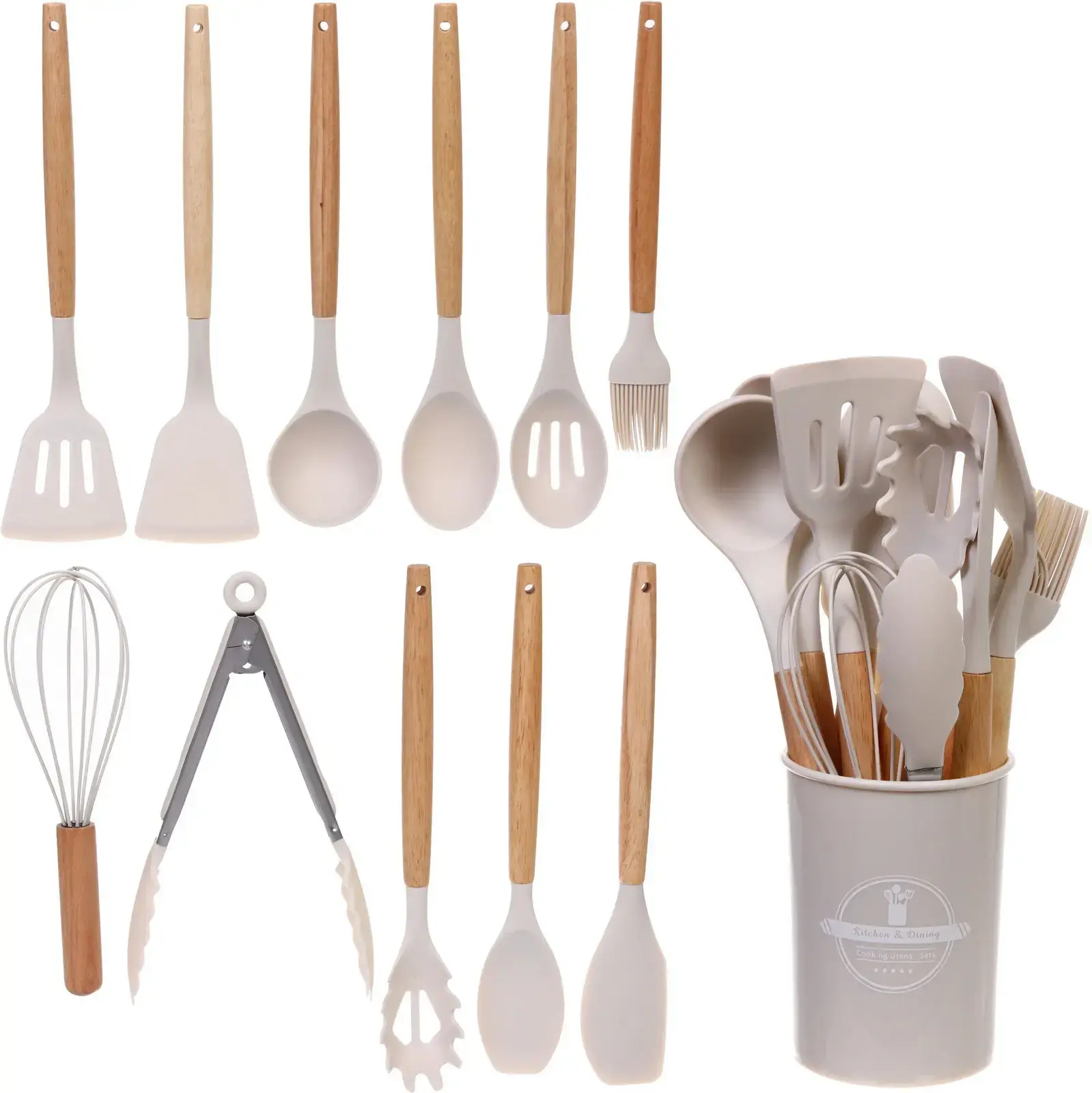 В набор входят 12 предметов, включая шпатель, ложку, половник, венчик, щипцы и кисточку. Все принадлежности выполнены из высококачественных материалов: дерево, пластик и силикон, что обеспечивает долговечность и надежность в использовании. Набор подходит для всех, кто любит готовить, будь то профессиональный шеф-повар или любитель кулинарии.