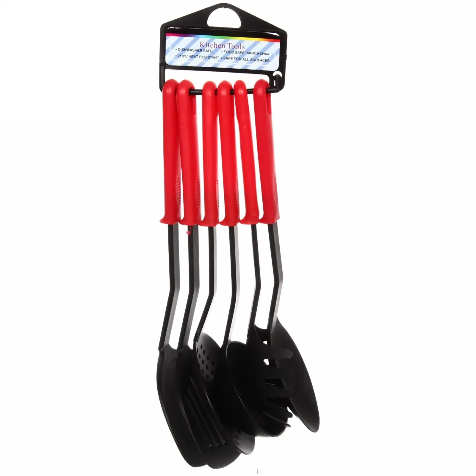 Этот набор кухонных принадлежностей станет незаменимым помощником на вашей кухне. Изготовленный из специального пластика, он не впитывает запахи и легко моется, что обеспечивает максимальный комфорт в процессе приготовления пищи. Удобные красные ручки не выскальзывают из рук, что делает использование этих инструментов безопасным и приятным.