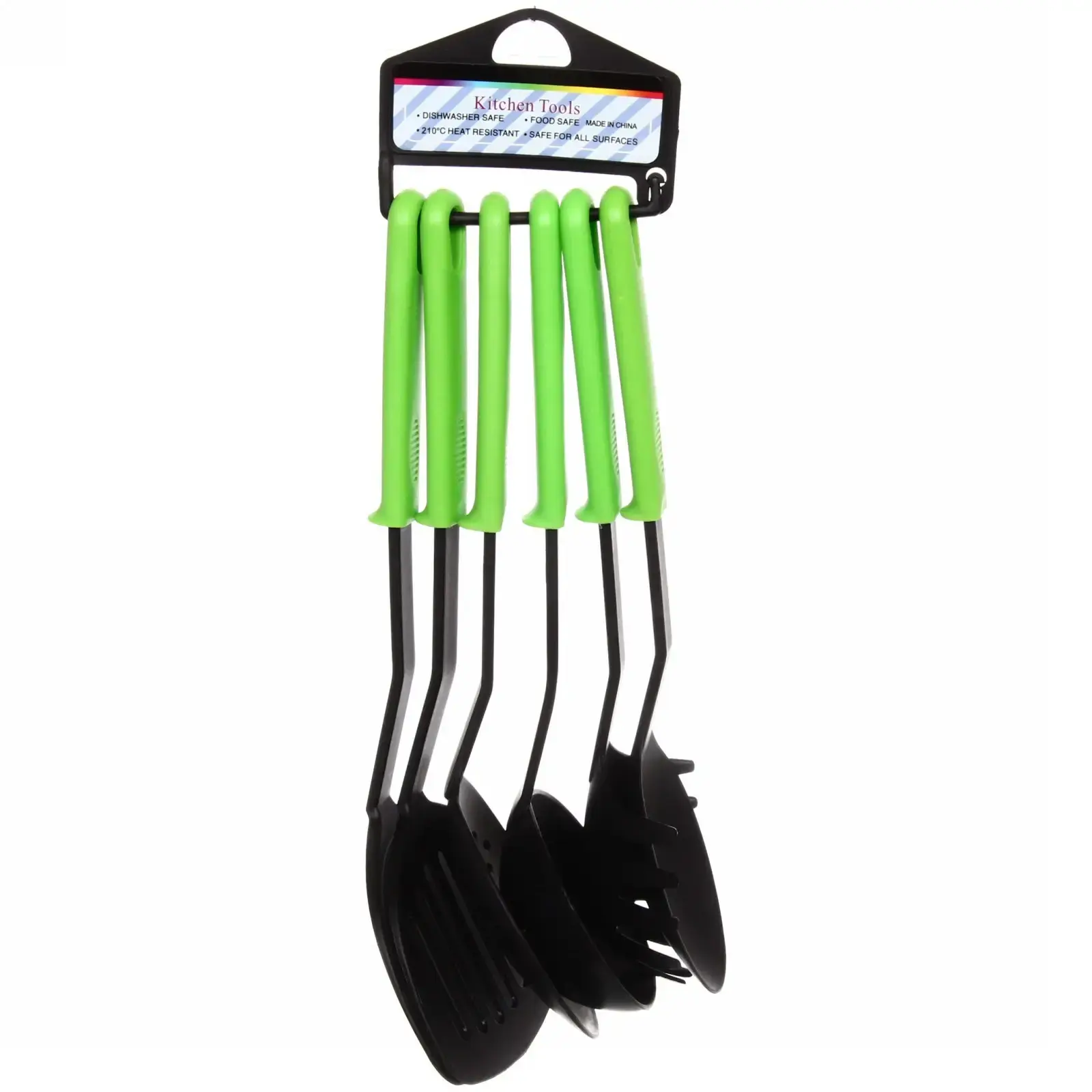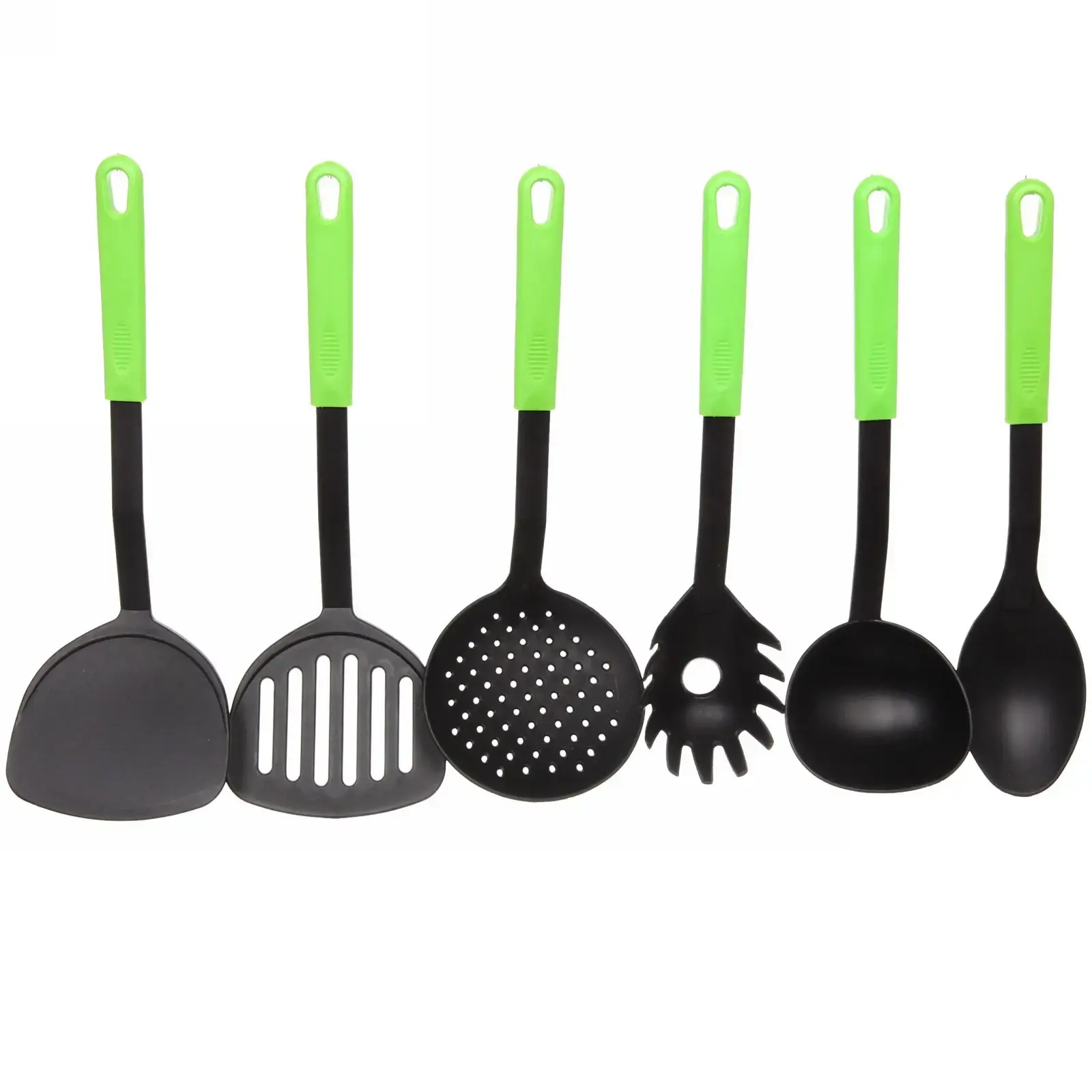 Этот набор кухонных принадлежностей станет незаменимым помощником на вашей кухне. Он включает в себя шесть необходимых инструментов, которые обеспечивают удобство и качество в процессе готовки. Яркие зеленые ручки не только привлекают внимание, но и обеспечивают надежный захват, что делает использование этих принадлежностей максимально комфортным.