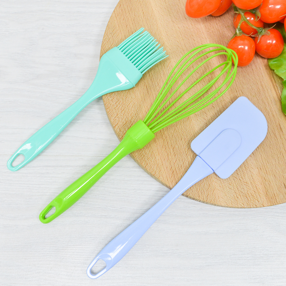 В набор входят три основных инструмента: кисточка для смазывания, лопатка и венчик. Каждый из них имеет свои уникальные функции и подходит для различных задач на кухне. Кисточка идеально подходит для нанесения масла или соусов, лопатка поможет переворачивать и сервировать блюда, а венчик — для взбивания и смешивания ингредиентов. Эти принадлежности подходят для использования на всех типах покрытий, что делает их универсальными.