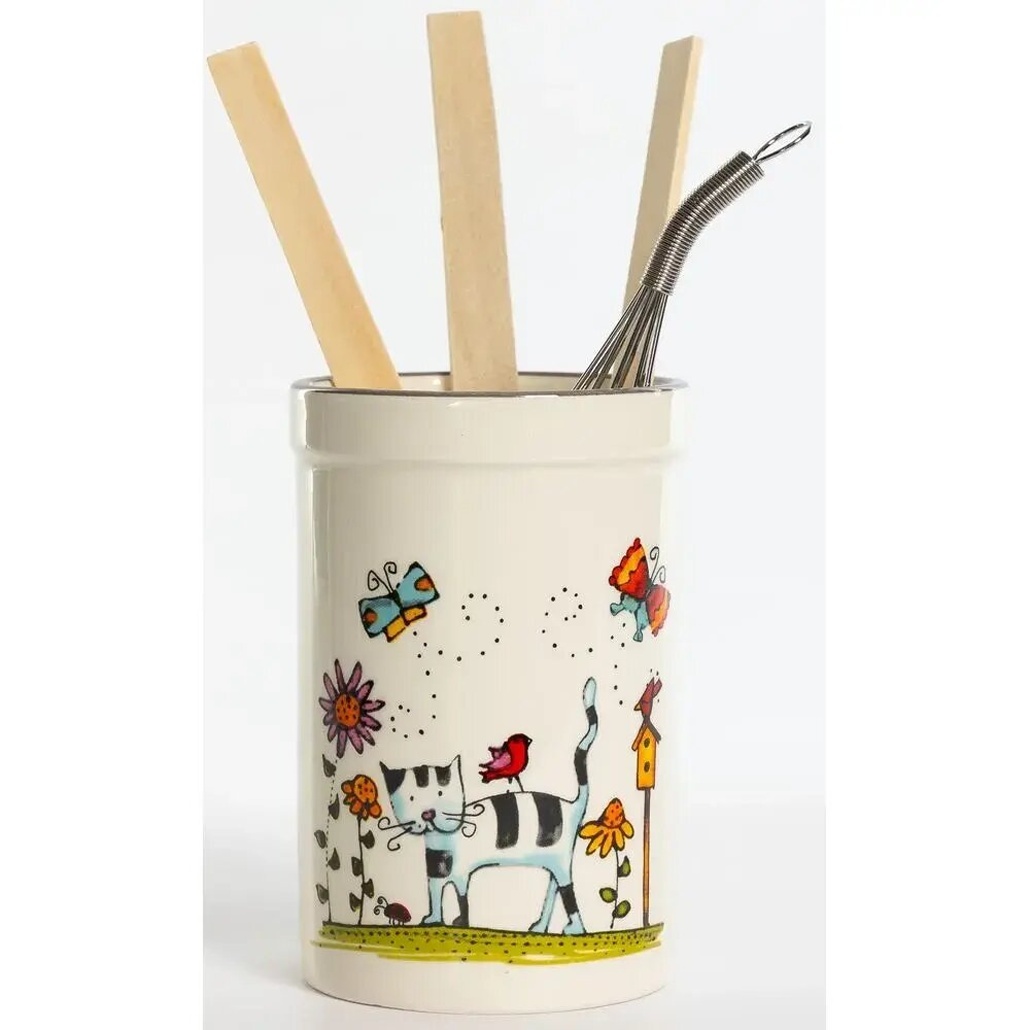 Набор OLAFF сочетает функциональность и стиль, организуя пространство с помощью керамической подставки и деревянных аксессуаров. Декоративный рисунок с флоральными мотивами добавляет уют в интерьер, превращая обычные принадлежности в элемент декора.