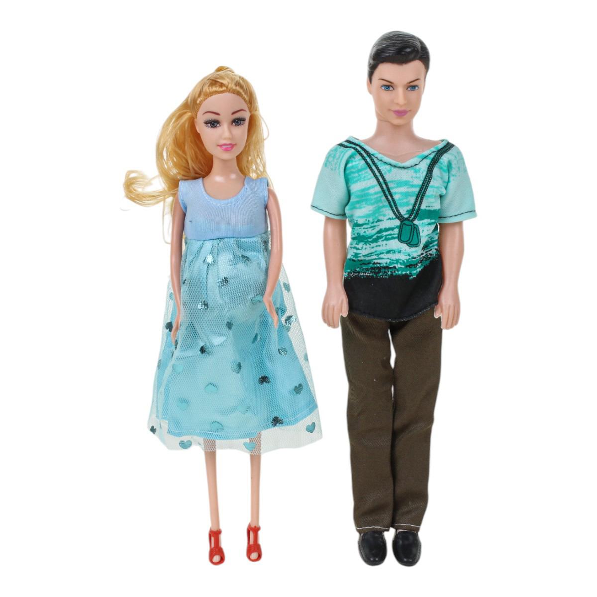 - Кукла-мужчина в голубой футболке с принтом и тёмных брюках