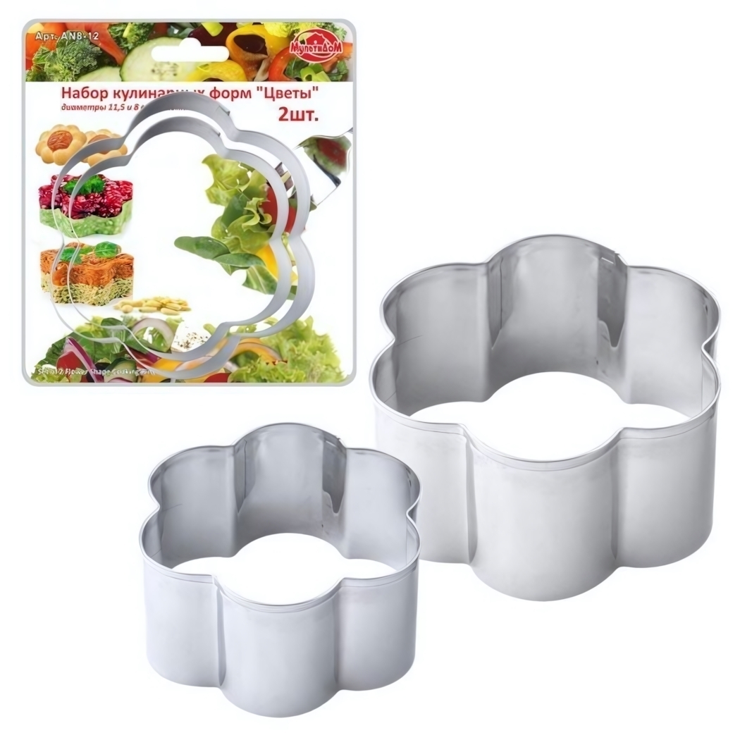 Это практичный набор из 2 металлических форм, изготовленных из коррозионностойкой нержавеющей стали, идеально подходит для создания красивых салатов, слоёных блюд, порционных тушёных и жареных изделий, а также для украшения тортов и пирожных.