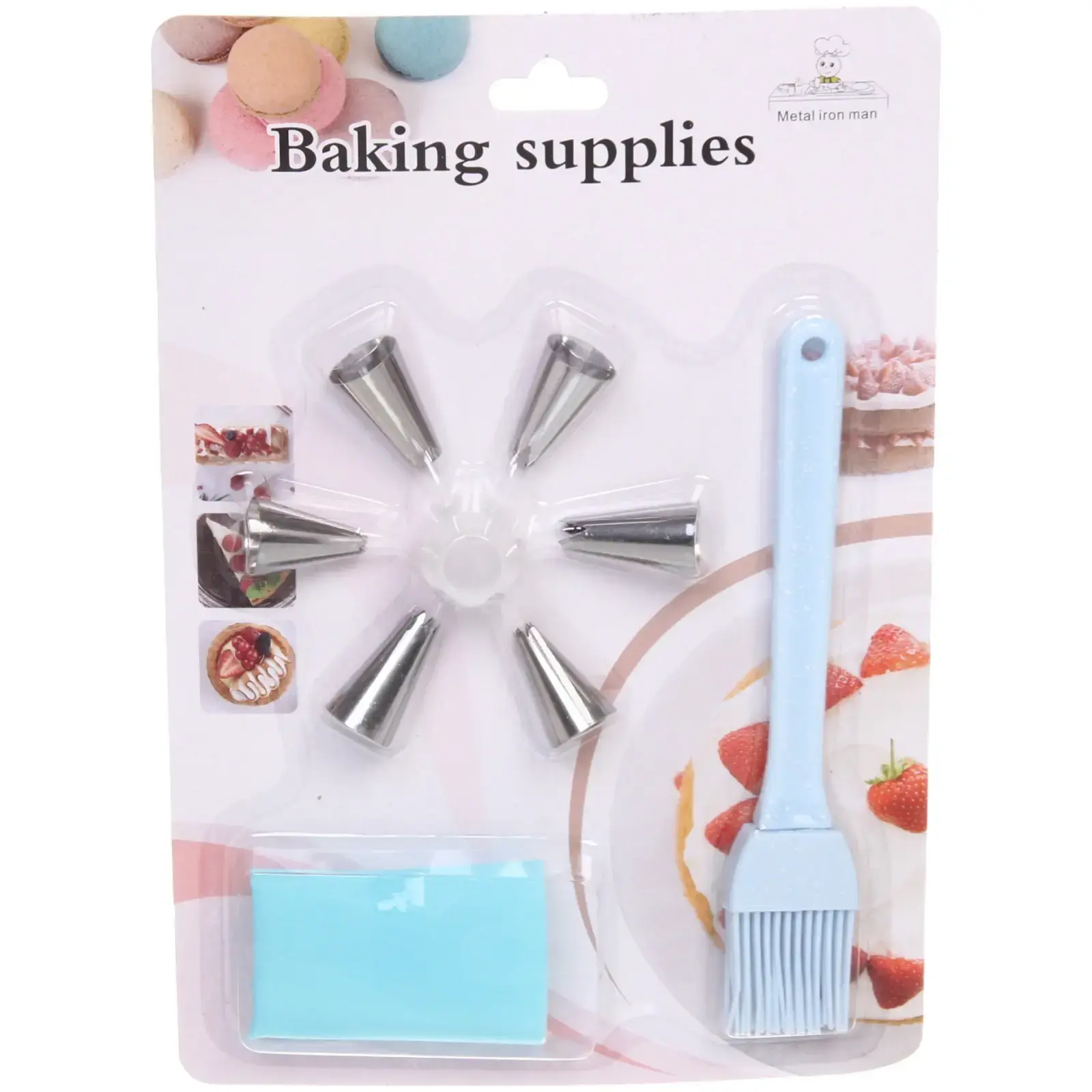 Универсальный комплект подходит для работы с любыми видами теста и кремов. Металлические насадки легко очищаются от остатков массы, а силиконовая кисть не оставляет ворсинок на поверхности десертов. Шпатель с закруглёнными краями предотвращает повреждение нежных бисквитных коржей.