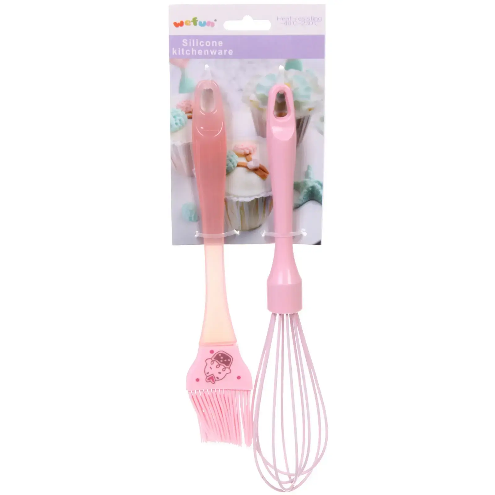 Кисточка и венчик имеют округлую форму с гладкой поверхностью, что обеспечивает легкость в использовании и уходе. Упаковка с изображением десертов подчеркивает кулинарное назначение набора и делает его отличным подарком для любителей готовить. Не упустите возможность сделать вашу кухню более функциональной и стильной с набором «Cupcake time»!