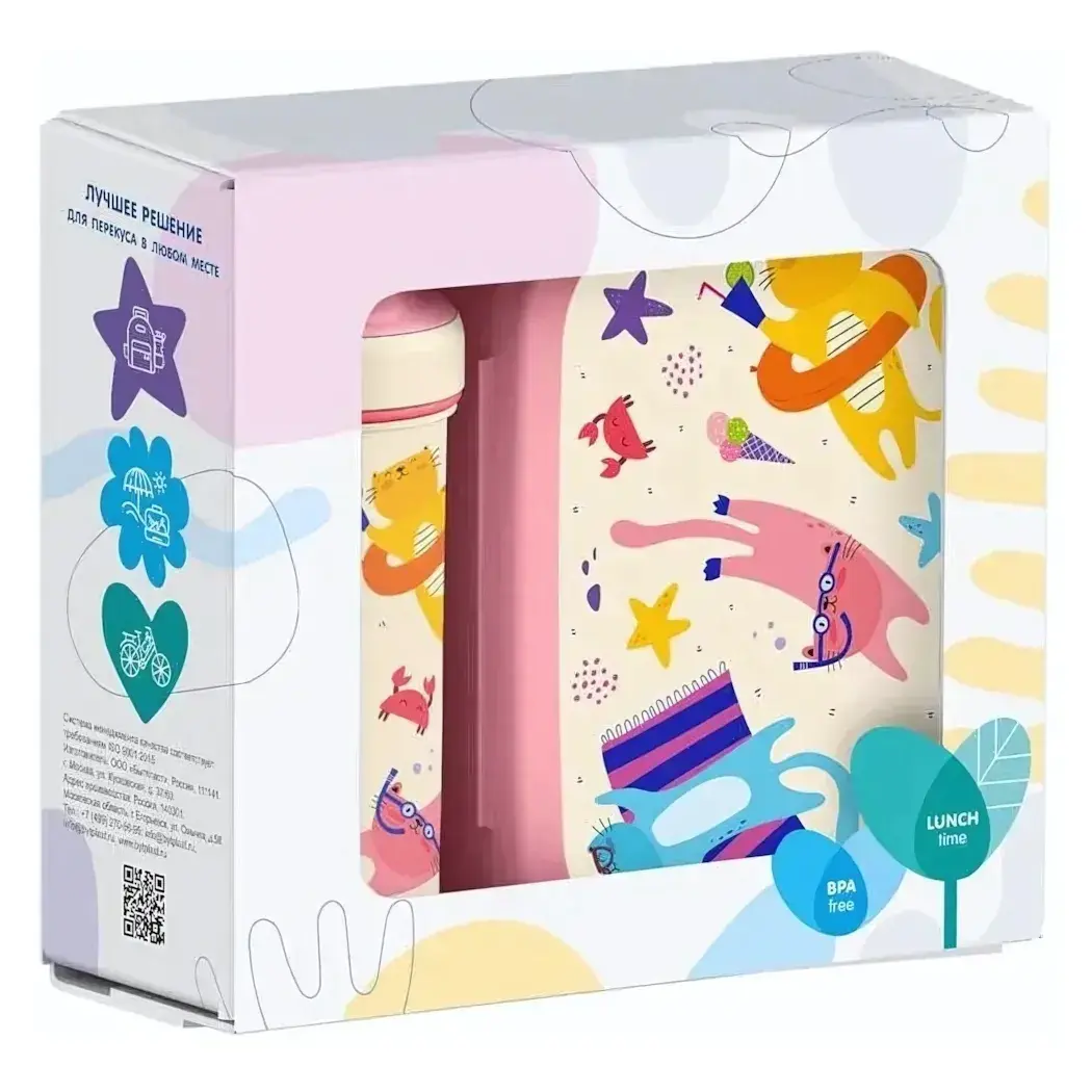Размеры ланч-бокса идеально подходят для полноценного обеда или перекуса в течение учебного дня. Стильный розовый декор с забавными мультяшными животными придется по душе маленьким модницам.