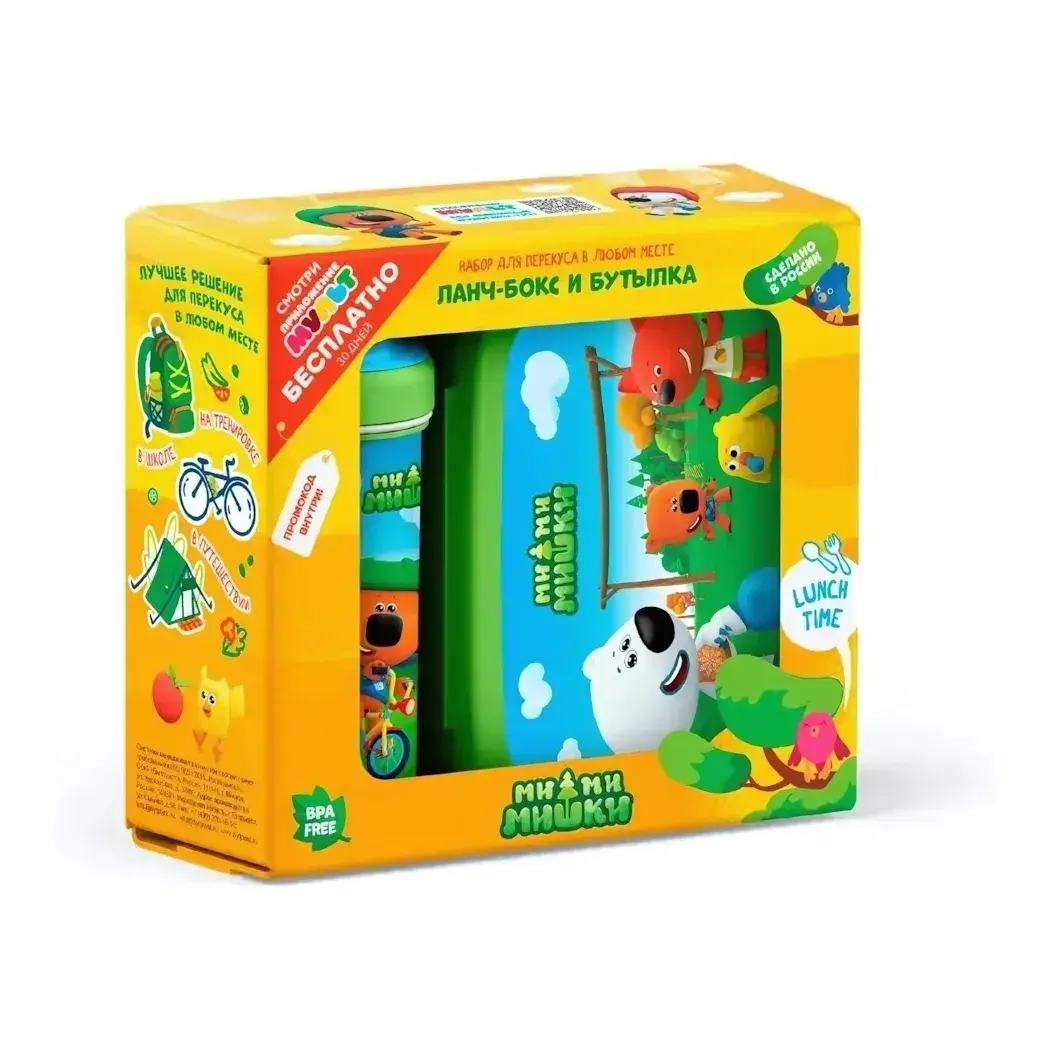 Компактные размеры (ланч-бокс 18х12х6см, стакан Ø7х15см) помещаются в школьный рюкзак. Яркие изображения персонажей стимулируют аппетит у детей, а прочный материал сохраняет форму при многократном использовании.