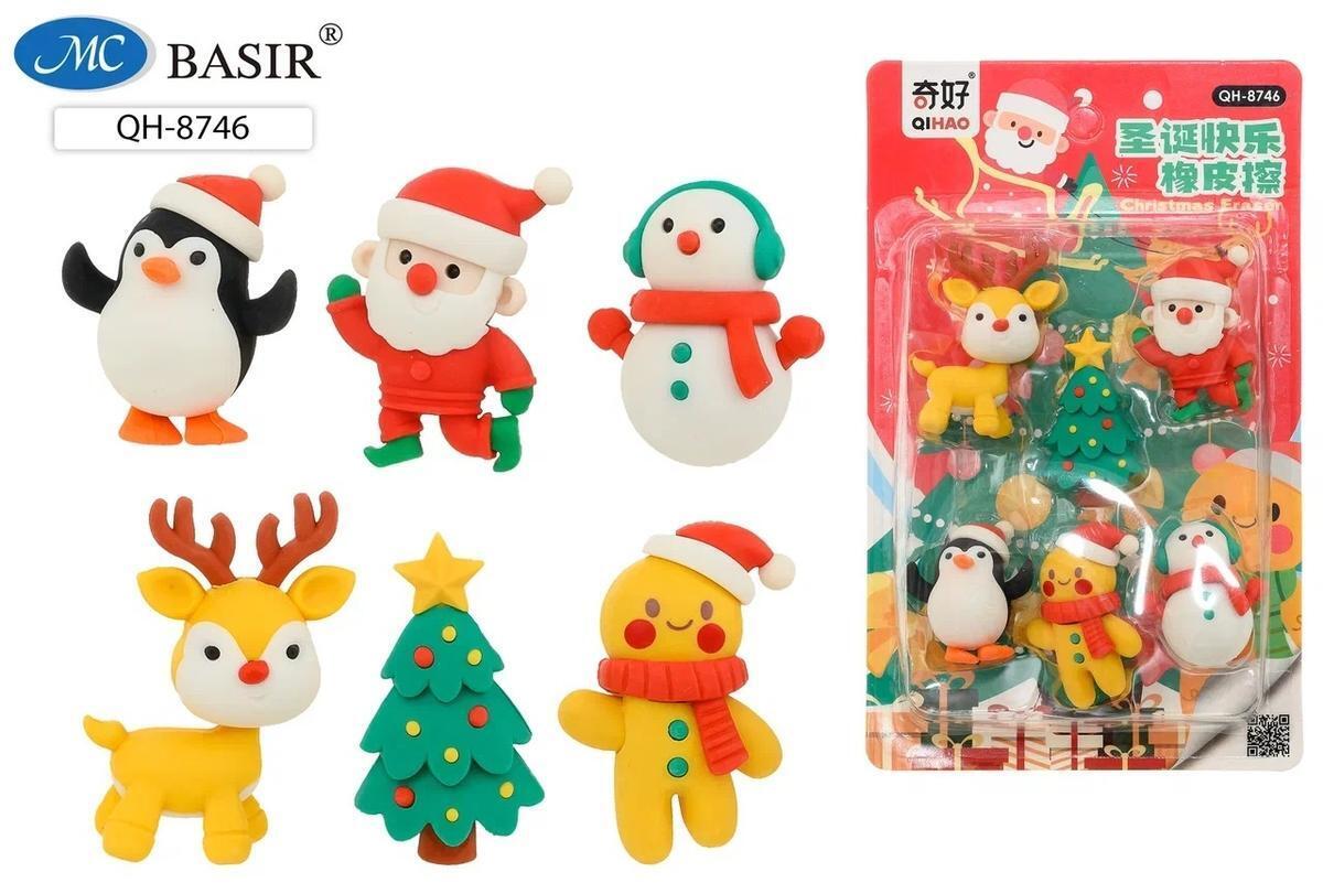 Набор ластиков "Новогодние" 6шт, фигурки животных и елочки, 16.5*10.5см