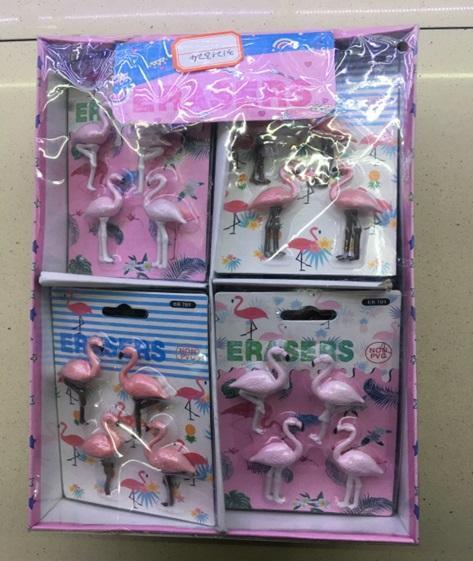 Ластики фигурные "Фламинго", 4 шт, розовые, для школы и офиса, чистое стирание