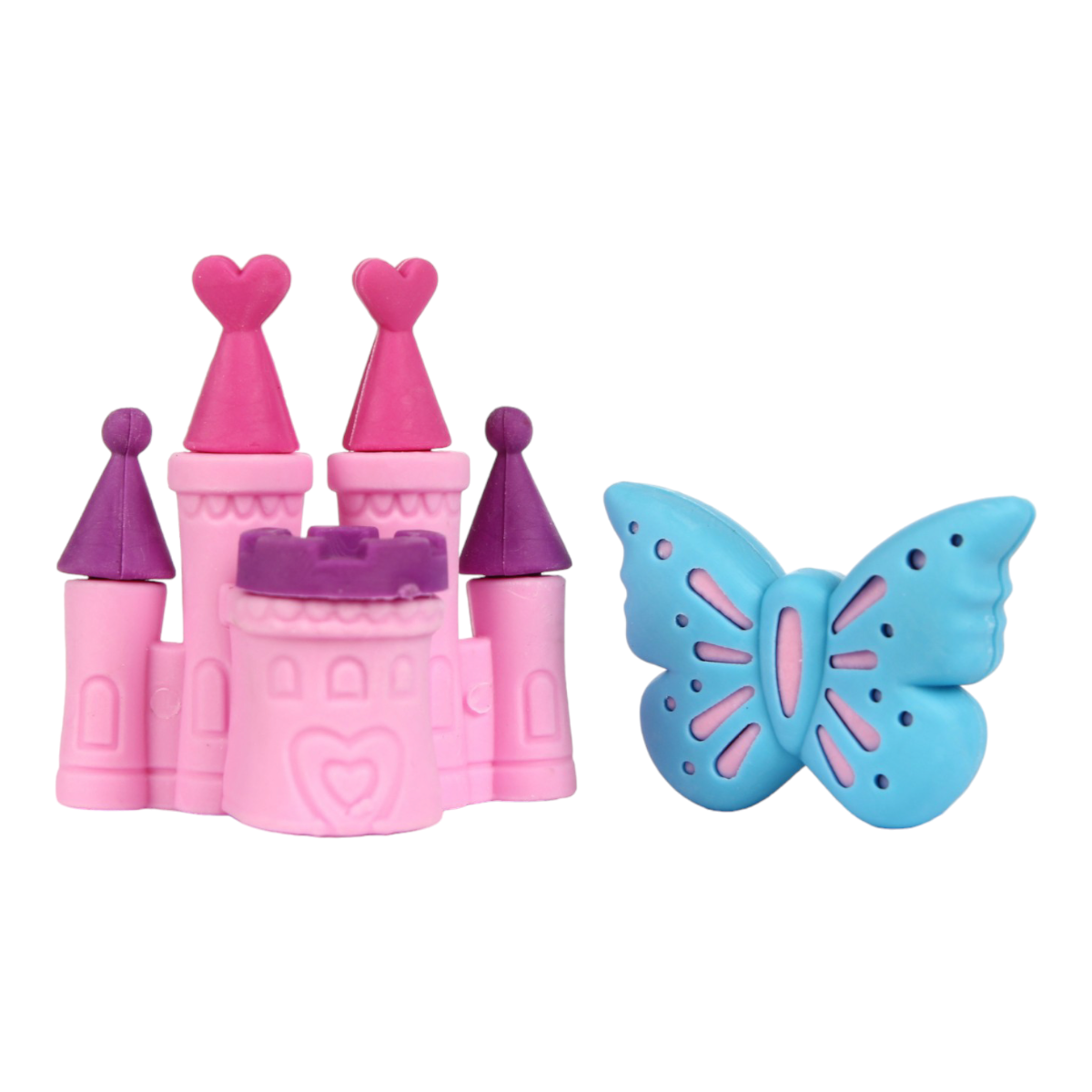 Ластики имеют детализированный дизайн с элементами, повторяющими реальные объекты - окна, колеса и другие характерные детали. Размер каждого ластика позволяет удобно держать его в руке даже ребенку.