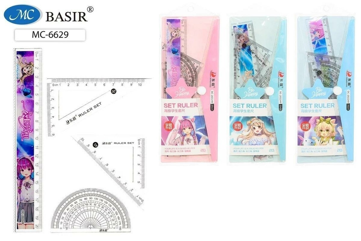 Набор линеек «АНИМЕ-Be Happy», 4 предмета: 2 треугольника, транспортир, линейка 20 см, пластик, розовый/голубой/белый