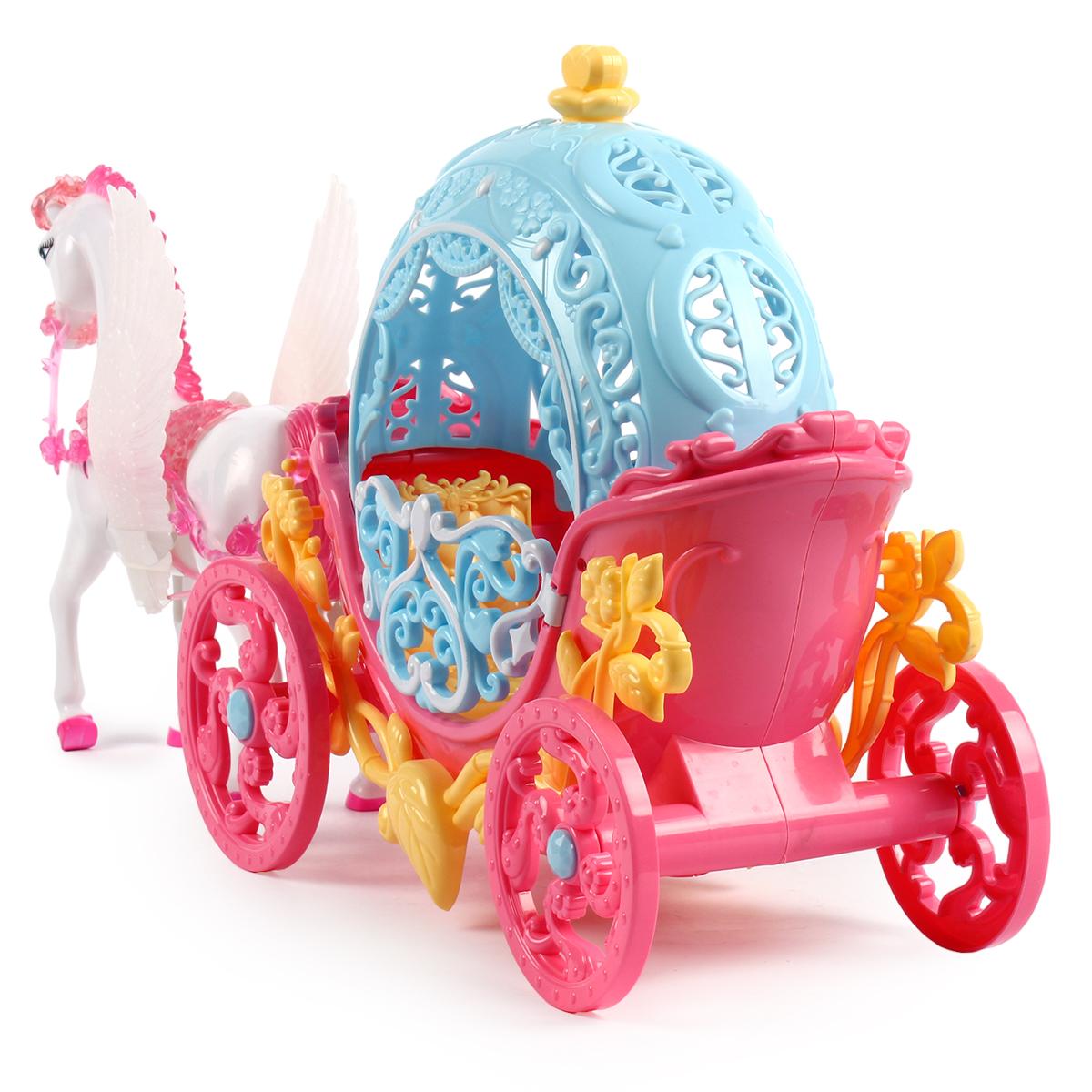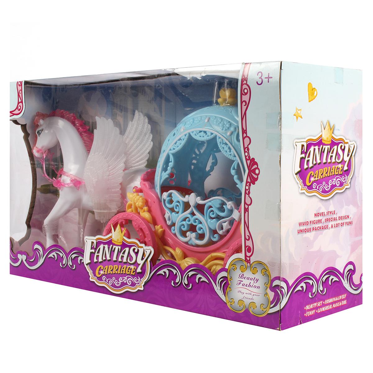 Этот яркий и сказочный набор включает в себя пластиковую карету в розовых и голубых тонах с декоративными элементами и фигурку белого крылатого пони с розовой гривой. Идеально подходит для ролевых игр детей, развивая фантазию и воображение. Создайте волшебную атмосферу, превращая игру в увлекательное приключение.