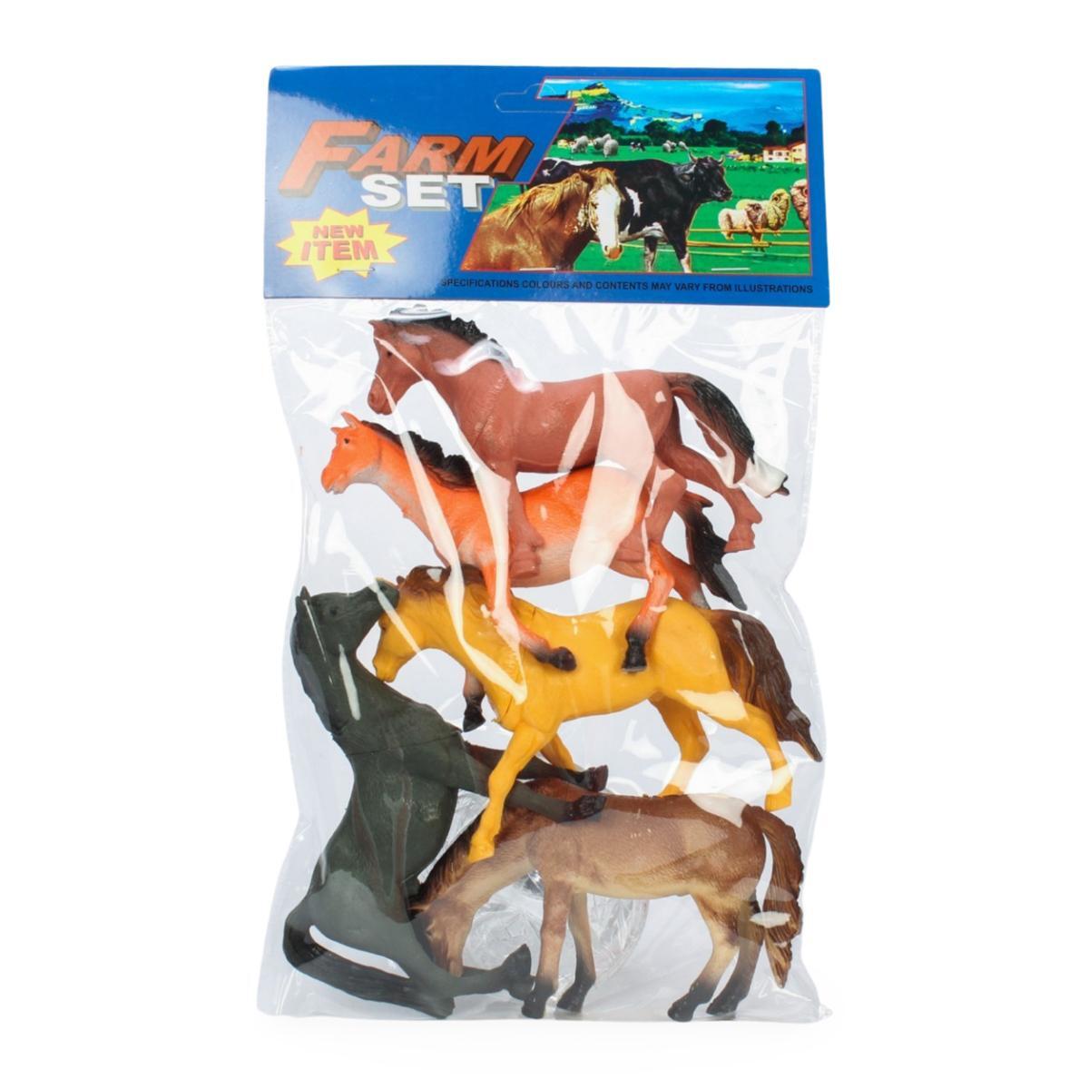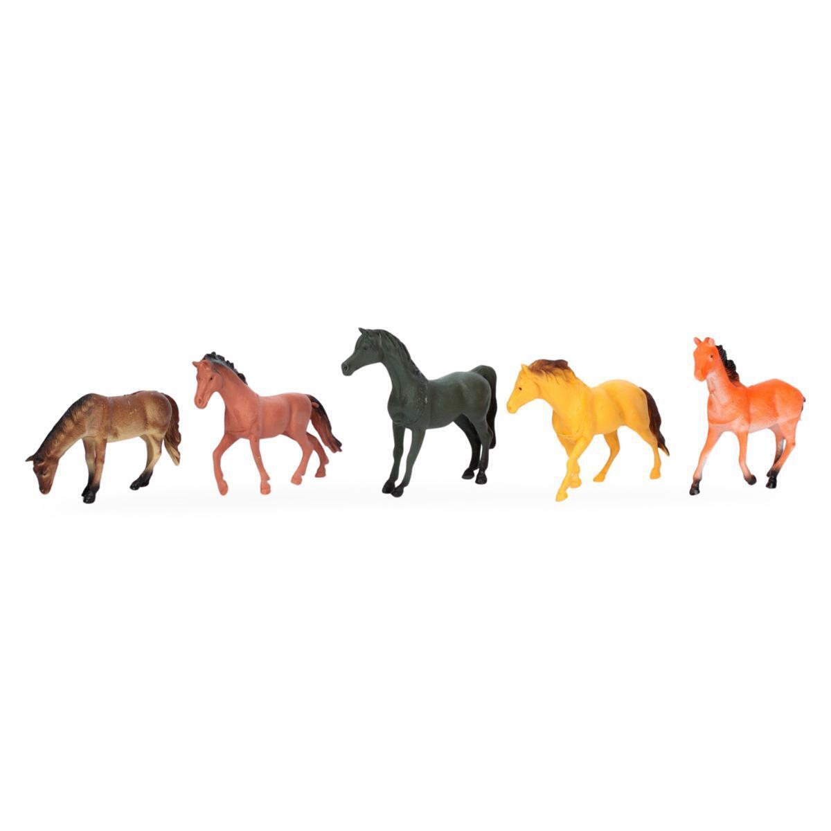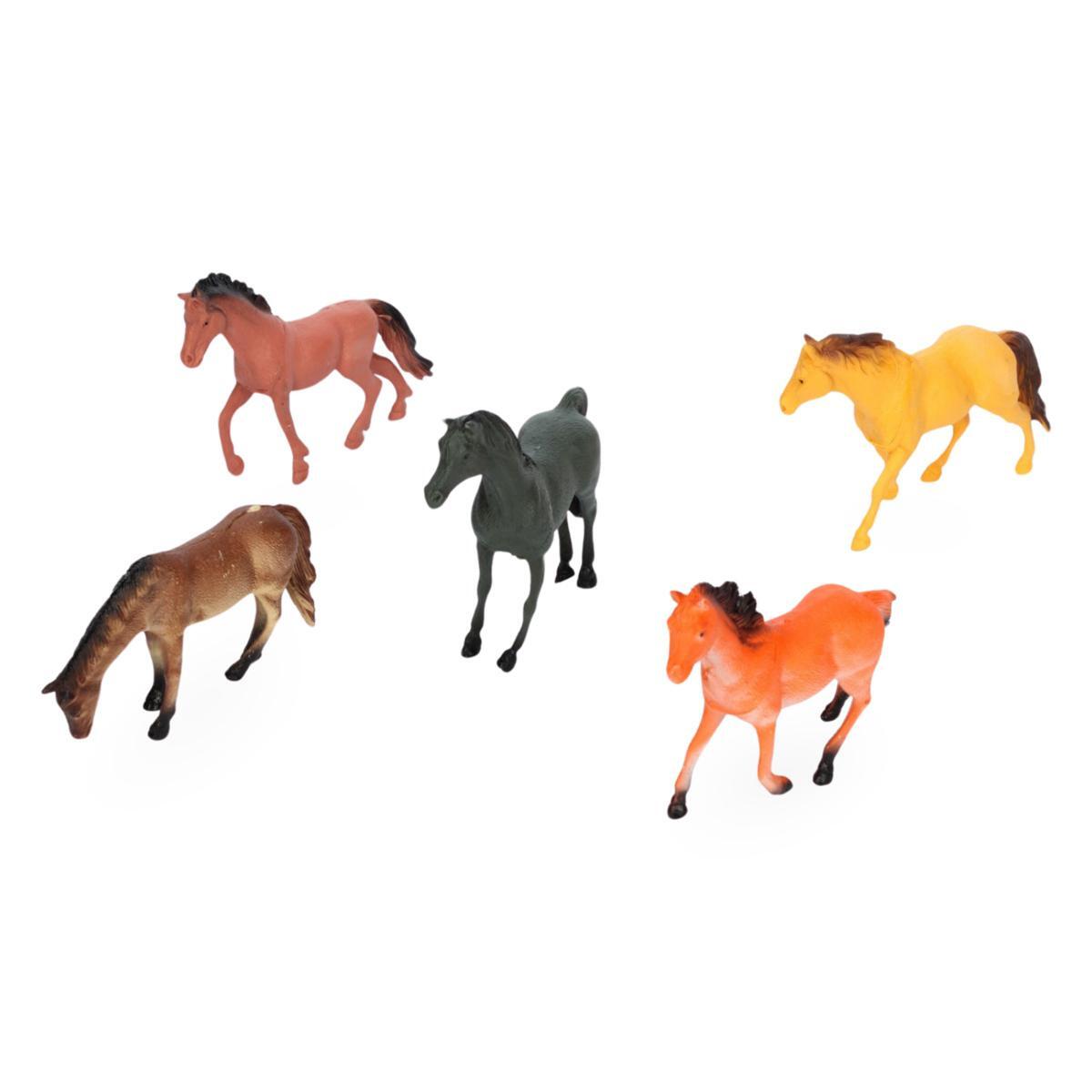 Набор игрушечных лошадей 5 шт, длина 14-16 см, пвх, яркие цвета