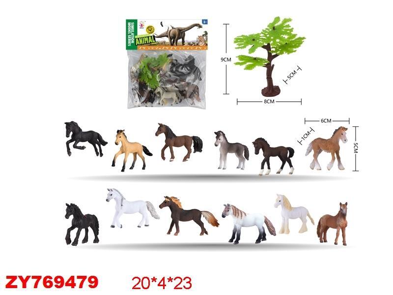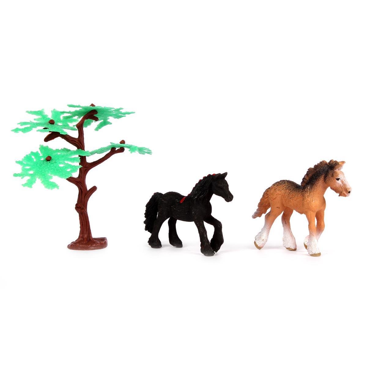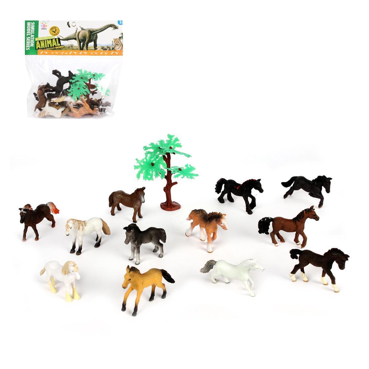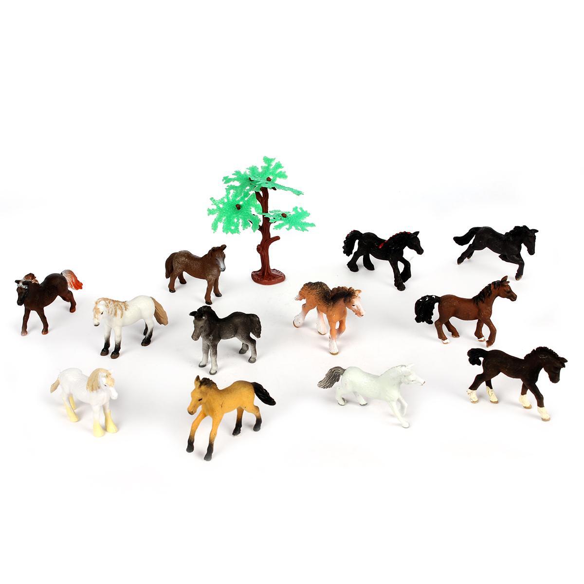 Набор фигурок лошадей, 12 штук + дерево, разные цвета, пластик, для детей 3+