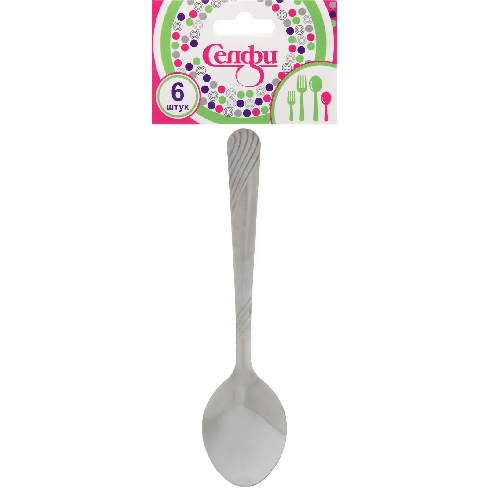 Каждая ложка имеет стандартный размер, что делает их универсальными для различных блюд. Упаковка набора оформлена в ярких цветах и содержит информацию о количестве предметов — 6 штук. Это отличный подарок для друзей и близких, а также прекрасное дополнение к вашей кухонной посуде.