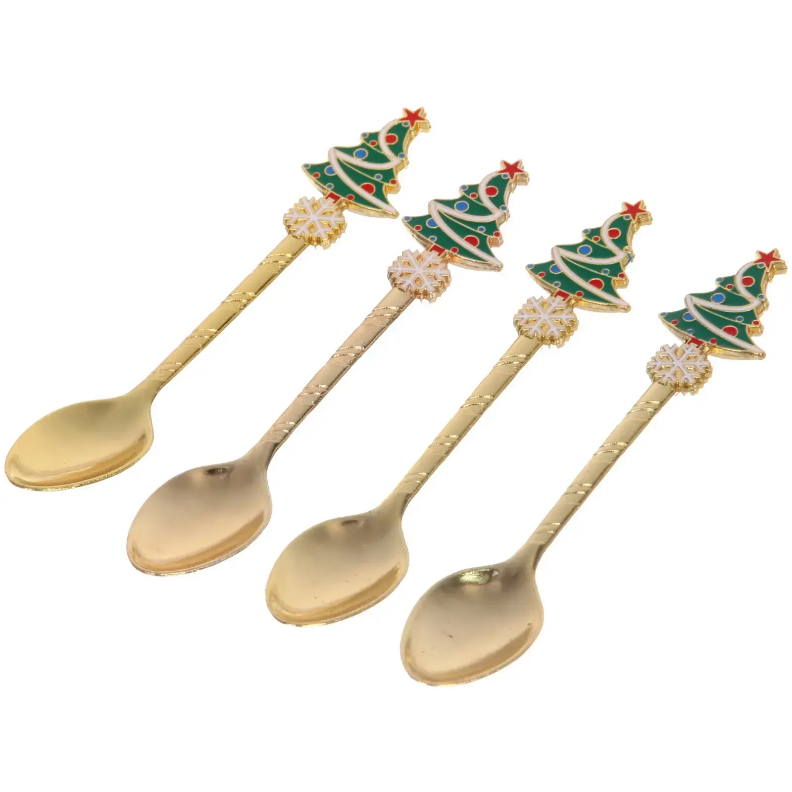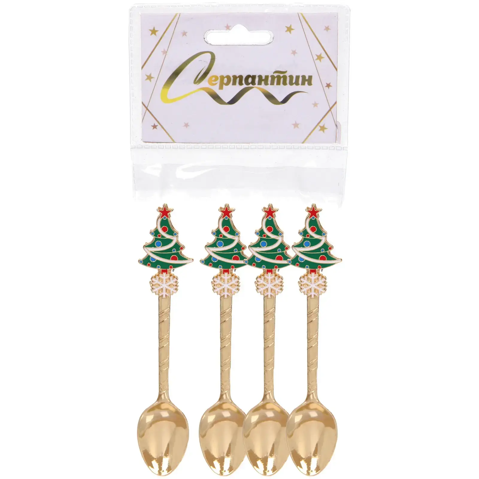 Набор десертных ложек «Ёлочка», 4 шт, золотистые, металл, праздничный дизайн для сервировки