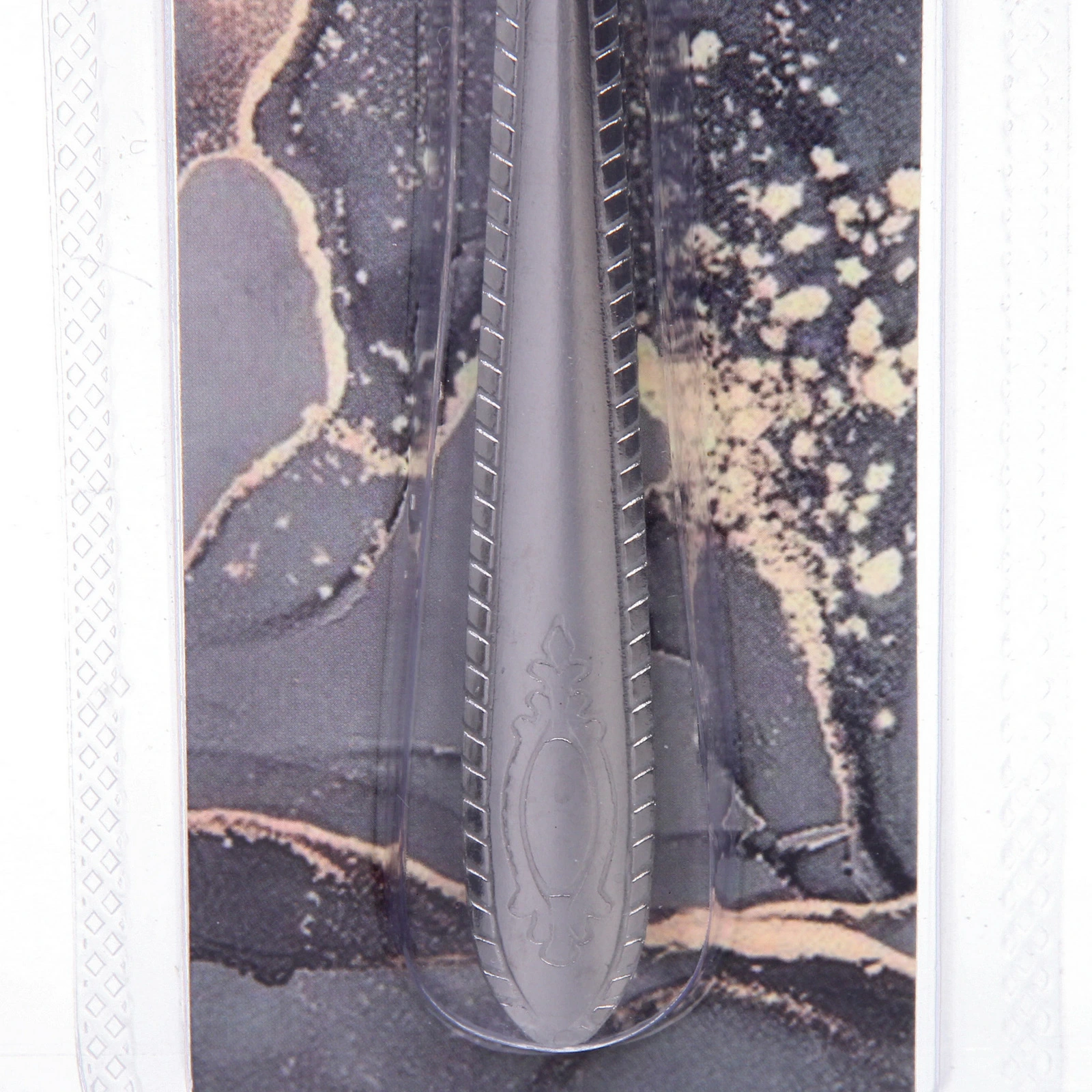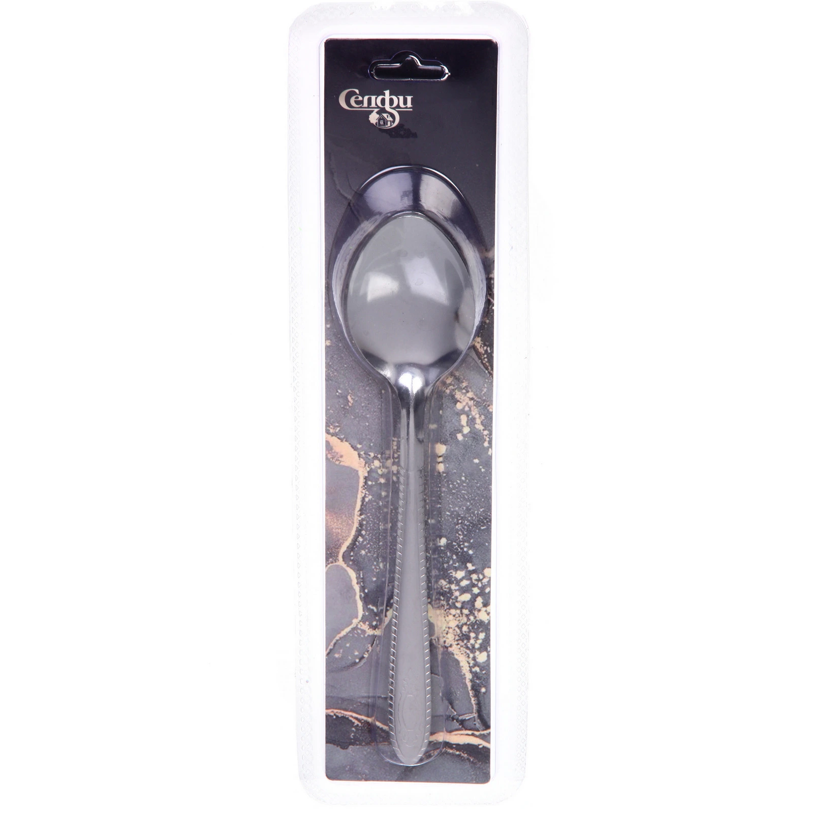 Ложки выполнены из нержавеющей стали серебристого цвета. Ручка имеет матовую текстуру с декоративными линиями по краям и аккуратным узором в нижней части. Поставляются на блистере, что удобно для хранения и размещения в торговом зале.