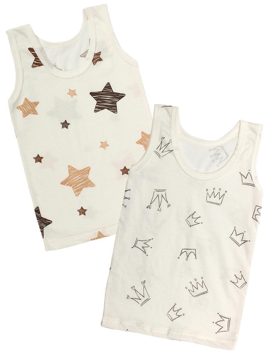 Детские майки 2 шт. с принтом корона и звезды, размер 92, бежевый, 100% хлопок, для комфорта