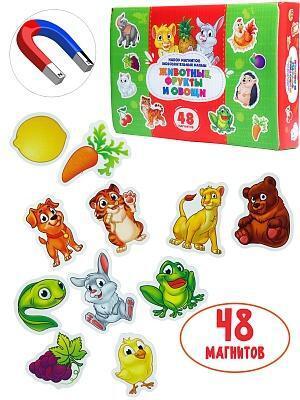 Набор магнитов 'Любознательный малыш', 48 шт, животные/фрукты/овощи, для игр и обучения