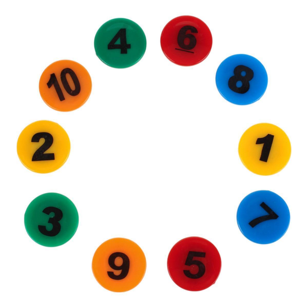 Практическая информация: 10 магнитов, диаметр 3 см, выполнены из пластика, произведены в Китае. Такой набор станет отличным помощником в изучении чисел и развитию моторики.
