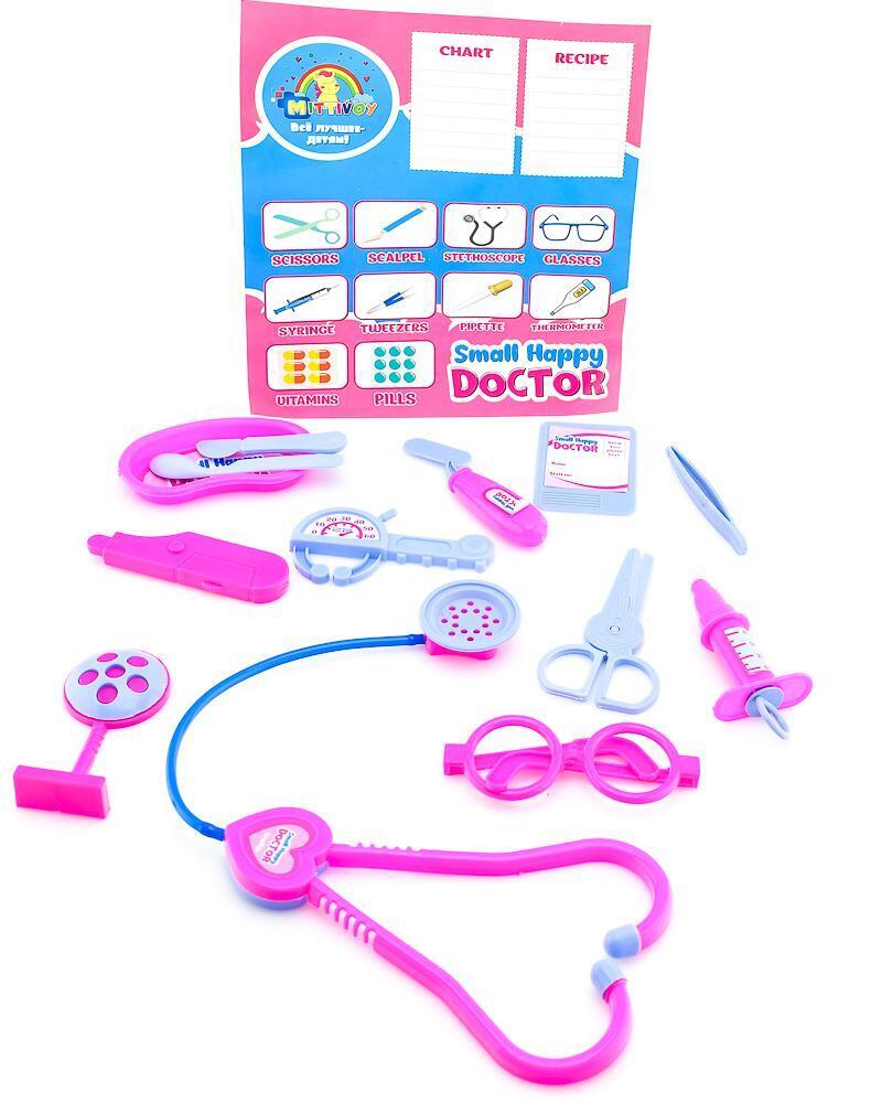 - 13 профессиональных аксессуаров: стетоскоп, шприц, термометр