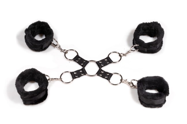 - Комплектация: 2 наручника для рук, 2 манжеты для ног с карабинами