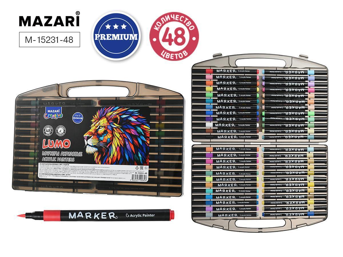 Набор маркеров акриловых 48 цветов lumo, кистевидный наконечник, пластиковый корпус, пенал в комплекте, mazari